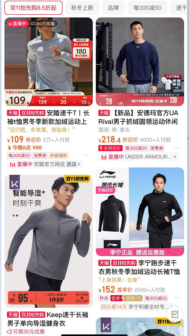 361和lining 一般不超过200. 中间还有个啥轻奢品牌混在其中,一看价格一两千,赶紧溜了