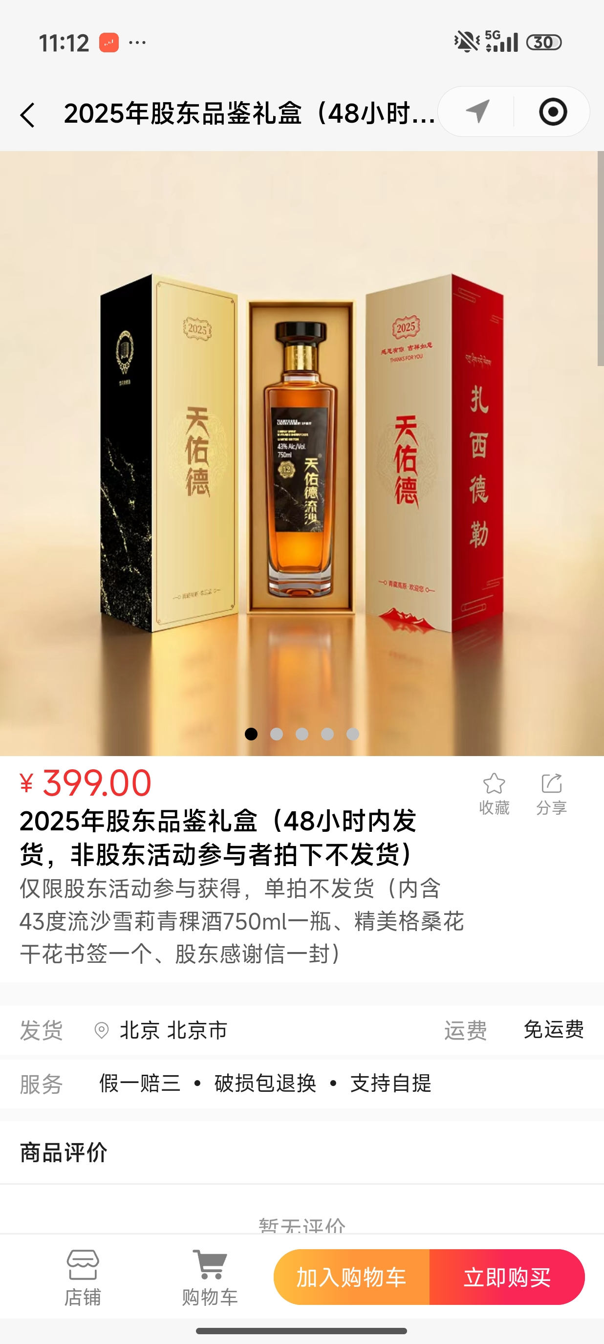 天佑德青稞酒品鉴礼盒一份,共计 3,200 份,在报名成功人数中抽取。品鉴装包含内容以股东收到实物为准。
