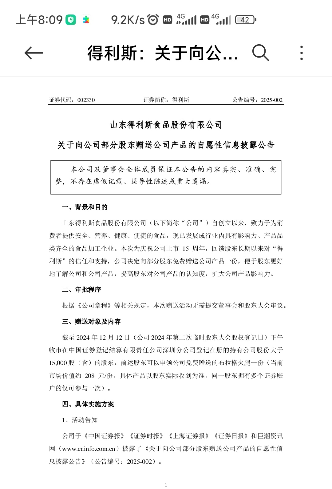 对持股数量没要求,送了优惠券买公司产品。