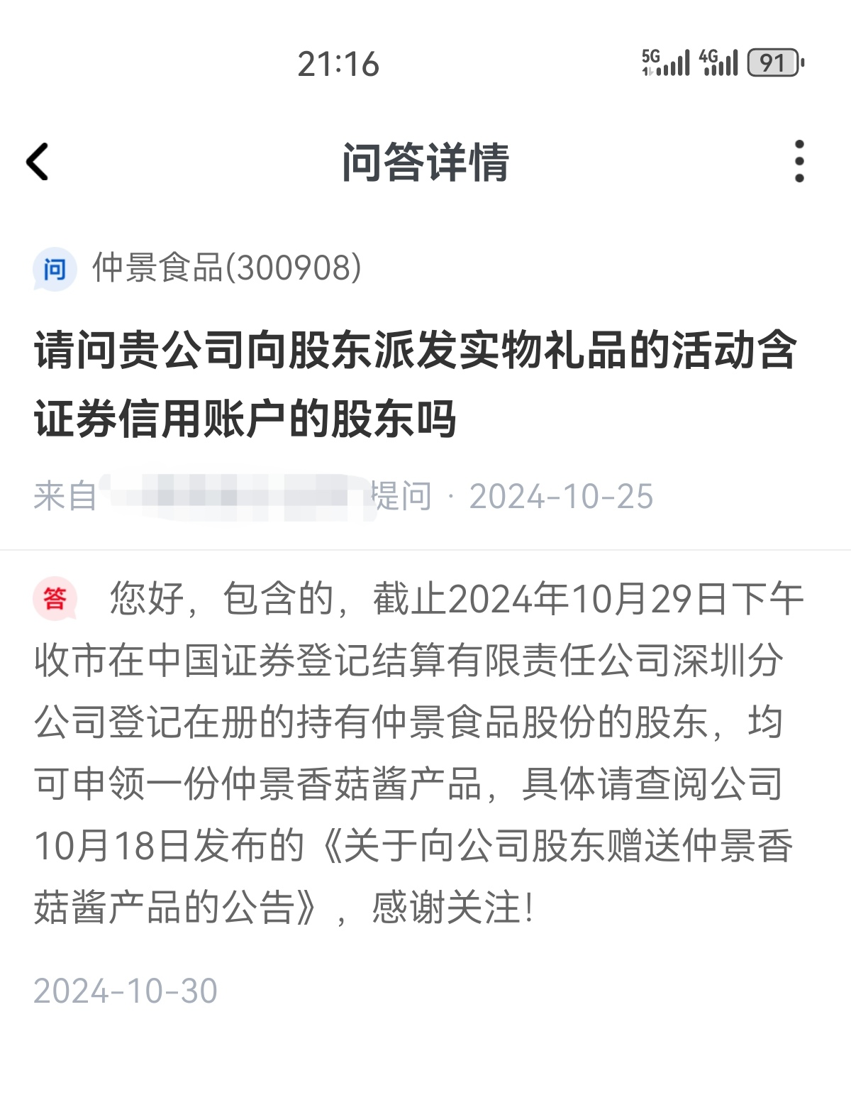 赠送物品:往年盖世食品赠送给股东的物品包括“盖世露营礼盒”