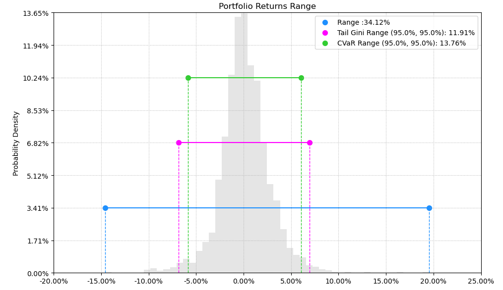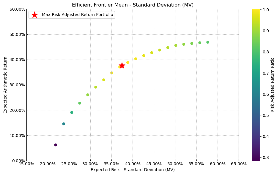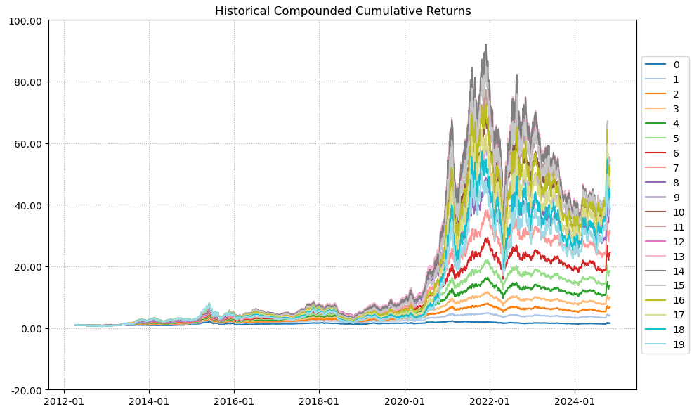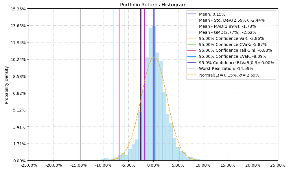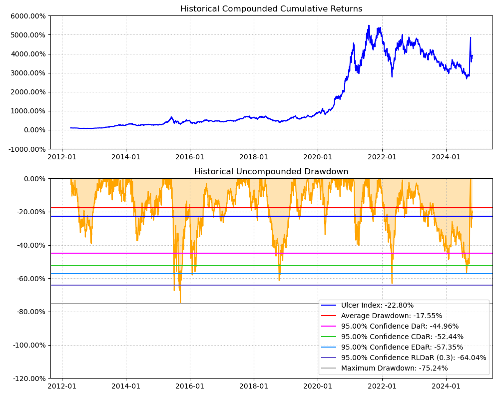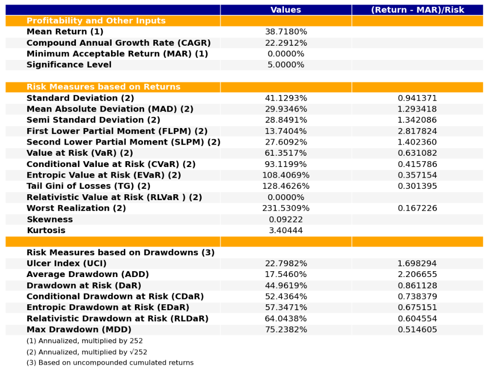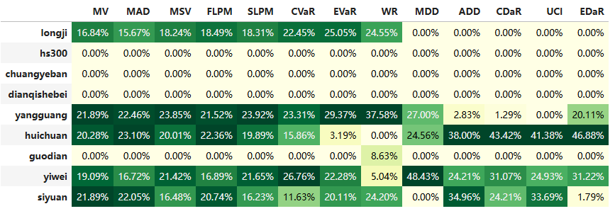 最后看下整个投资组合的情况,日度均值回报在0.15%,吊打汽车行业,涨是真的能涨,但波动也是真的大,13.76%的CVaR区间比汽车行业都高不少。