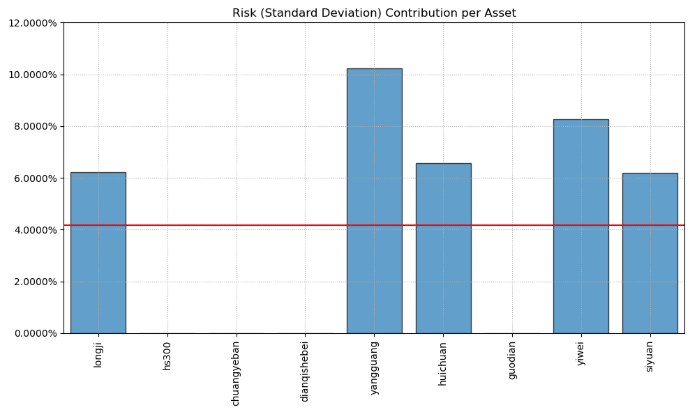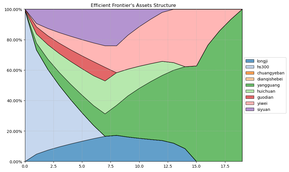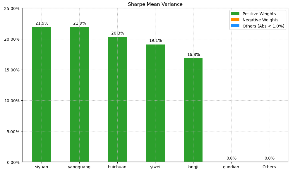 按最高夏普比率配置的话,系统给的权重近17%,最大权重的思源电气占比22%,也算伯仲之间了。