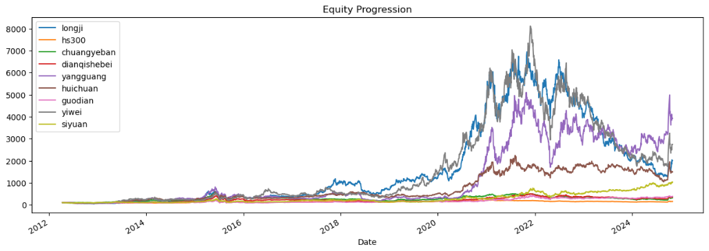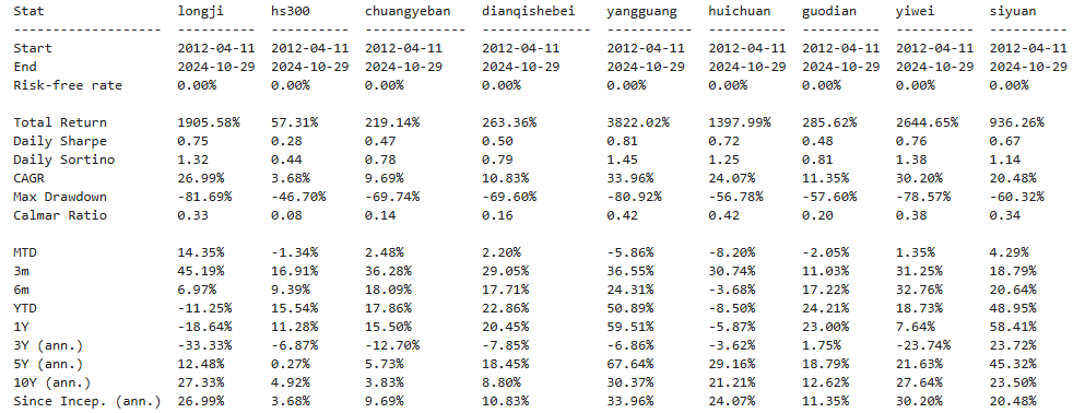 区间累计回报近40倍,最大回撤75%,整体表现投资组合都是要好于隆基绿能个股的,也是遥遥领先我们昨天分析的汽车行业。