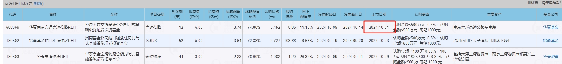 华夏南京交通高速公路REIT 上市日期录入错误了,公告是2024年11月1日 上市 ,集思录里 在待发REITs历史页面里显示的是2024年10月1日 上市。应该是因为日期错误后没有显示在待发REITs 页面里