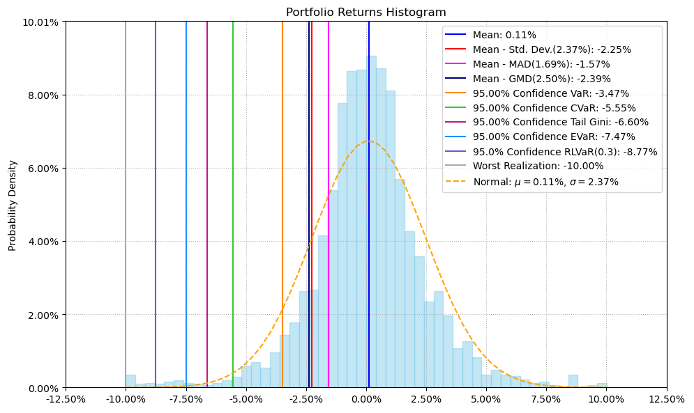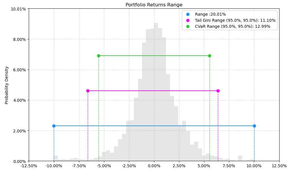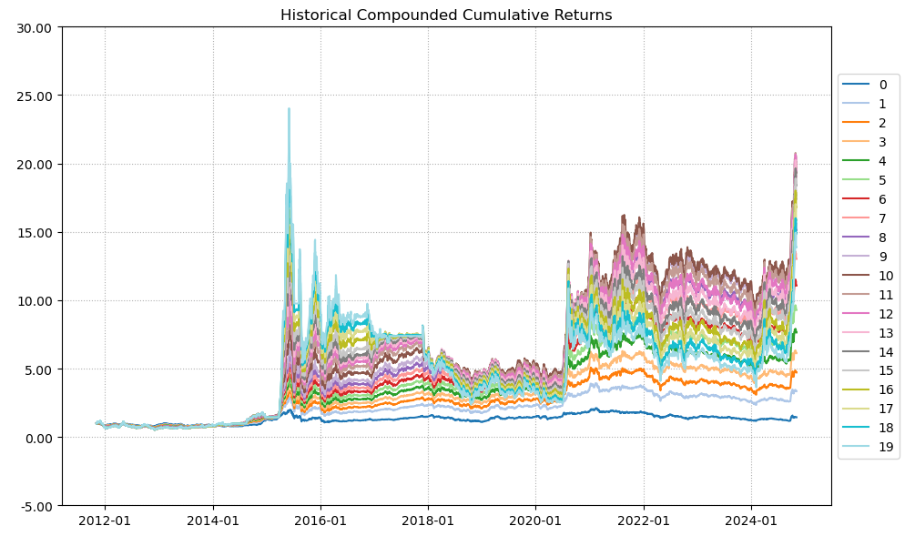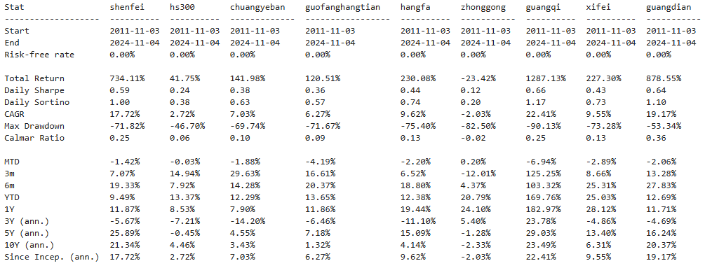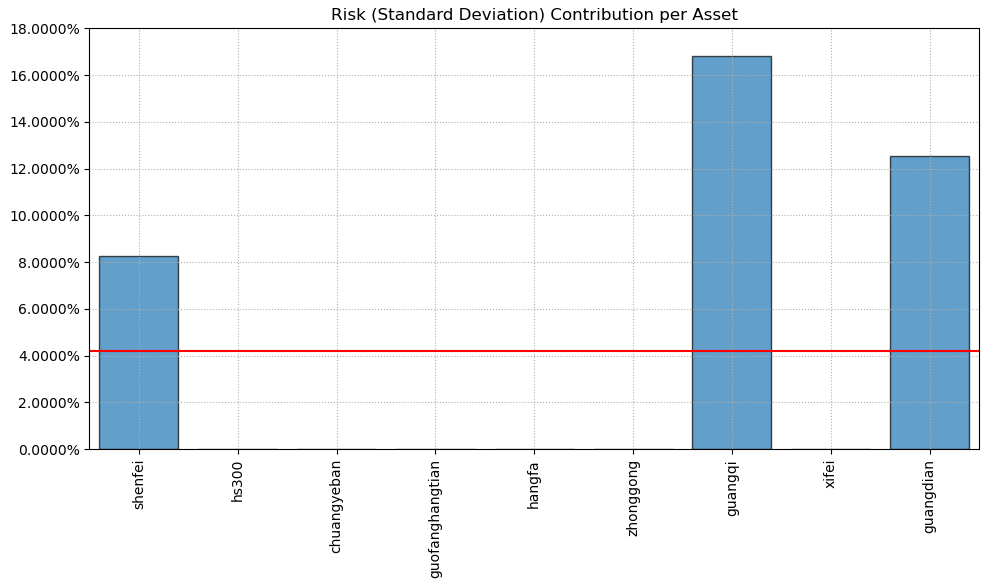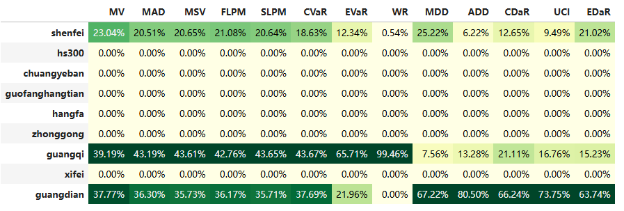 最后看下整个投资组合的情况,日度均值回报在0.11%,比能源行业0.08%好,但对比光伏行业的0.15%就差点意思。13%的CVaR波动也不低了,跟芯片光伏那些成长行业的波动不相上下。