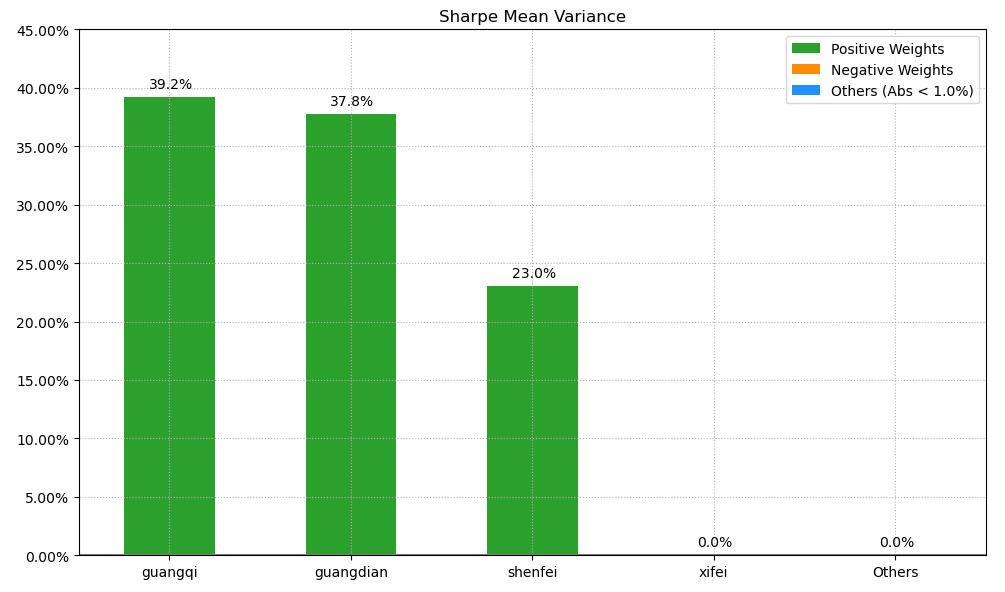 按最高夏普比率配置的话,系统给的权重近25%,最大权重的光启技术占比近40%,有一定差距。