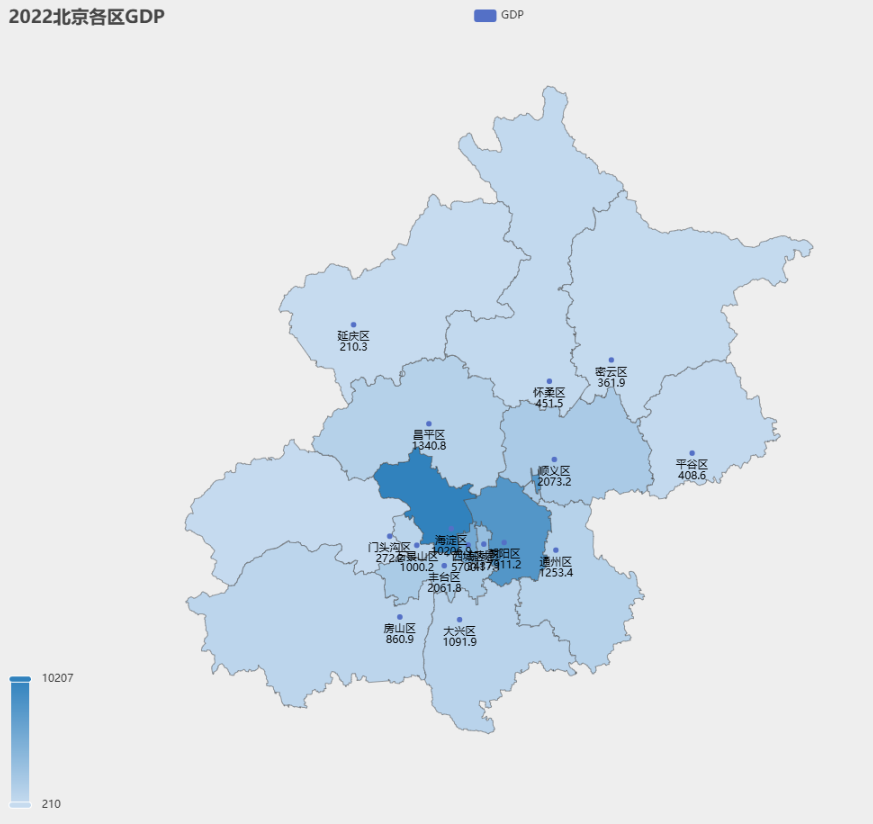 北京GDP:海淀区最高10207亿,延庆区最低210亿。