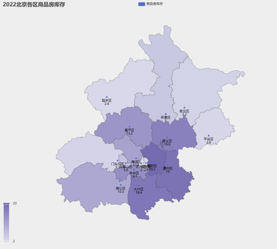 北京商品房库存:朝阳最多2030万平米,西城区最少200万平米。