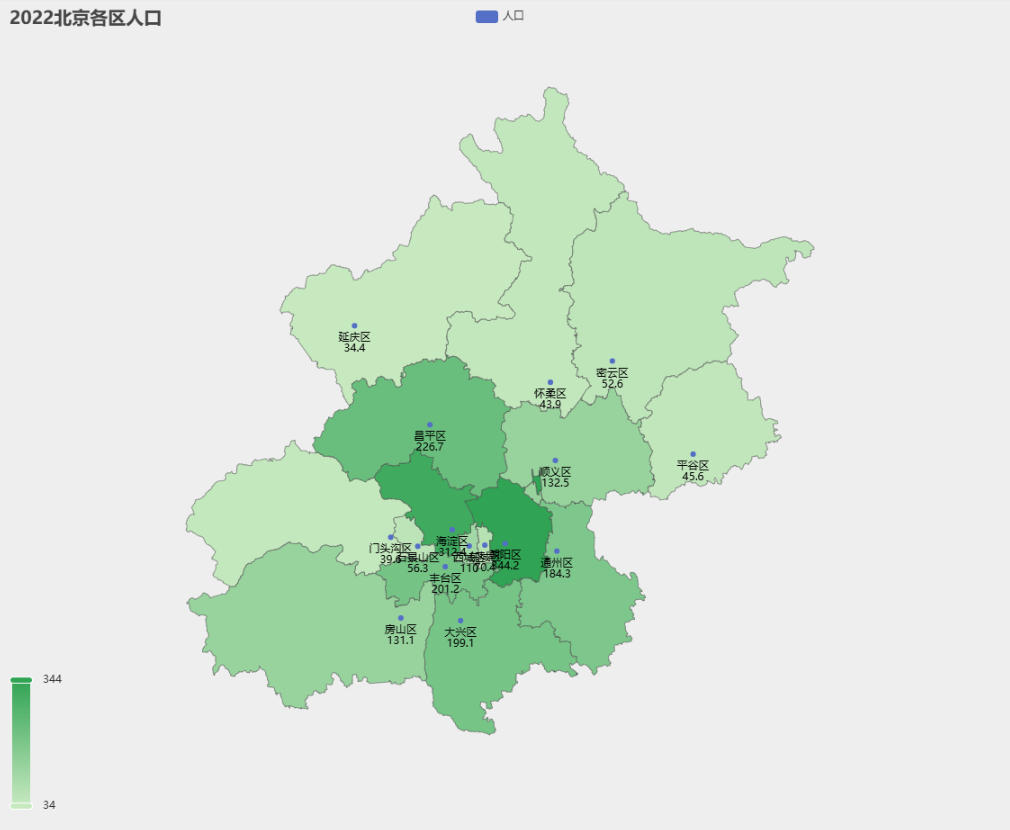 北京人口:朝阳区最多344万,延庆区最少34万。