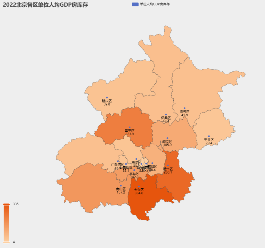 北京单位人均GDP商品房库存:大兴区最高335平米,西城区最低4平米。