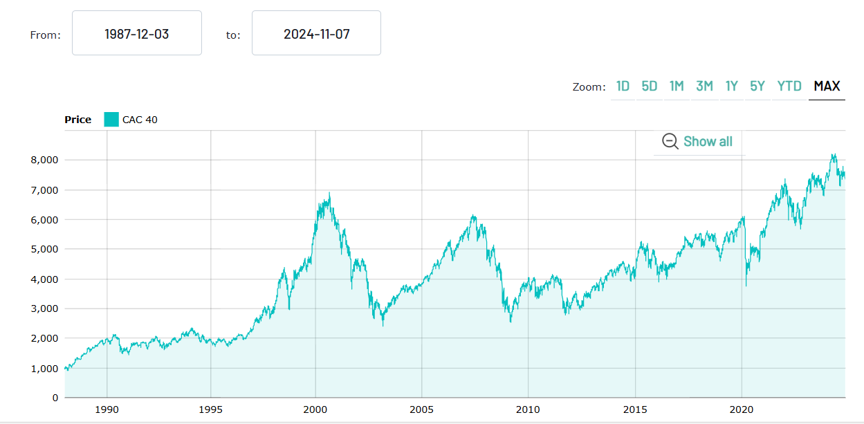 cac40 当年2007年和上证指数同时6000点,2015年同时到的5000点,再看看现在,才人家CAC40一半。上证现在没有任何参考意义,上证包含了太多垃圾股小盘股。国外的指数,除了标普,其他最多100只成分股。cac才40只。