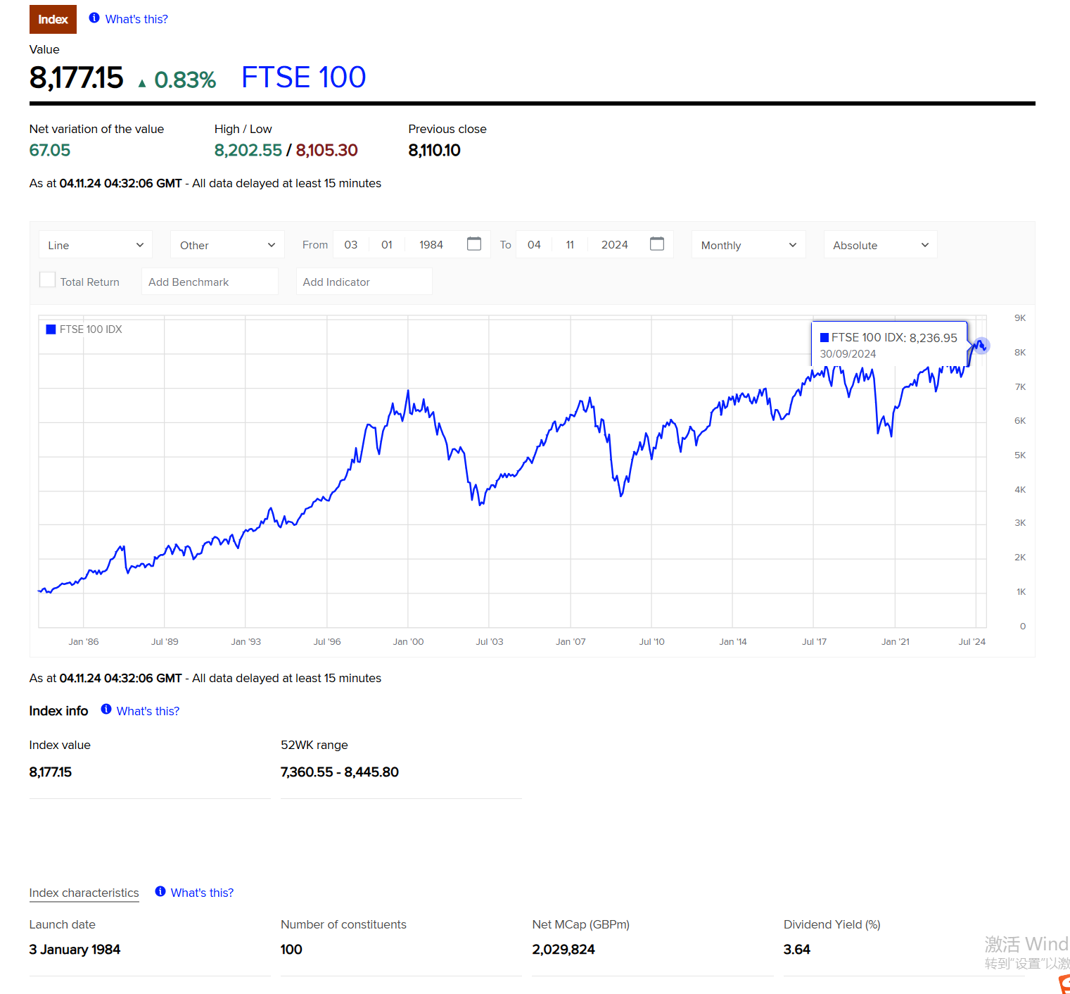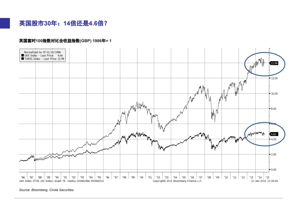 很明显就算股指不涨,20年每年平均4%股息率,股息复投本金也翻倍了,和英国国内名义GDP增速保持一致。
