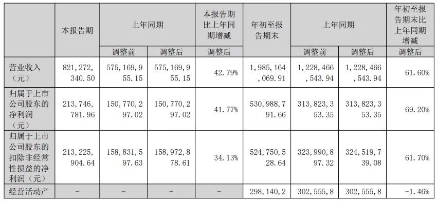 2024年前三季度公司实现营业收入同步增长61.6%,归属上市公司股东的净利润同比增长69.2%。
