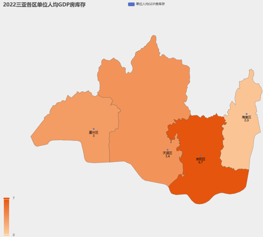 三亚单位人均GDP商品房库存:吉阳区最高6.7平米,海棠区最低0.9平米。
