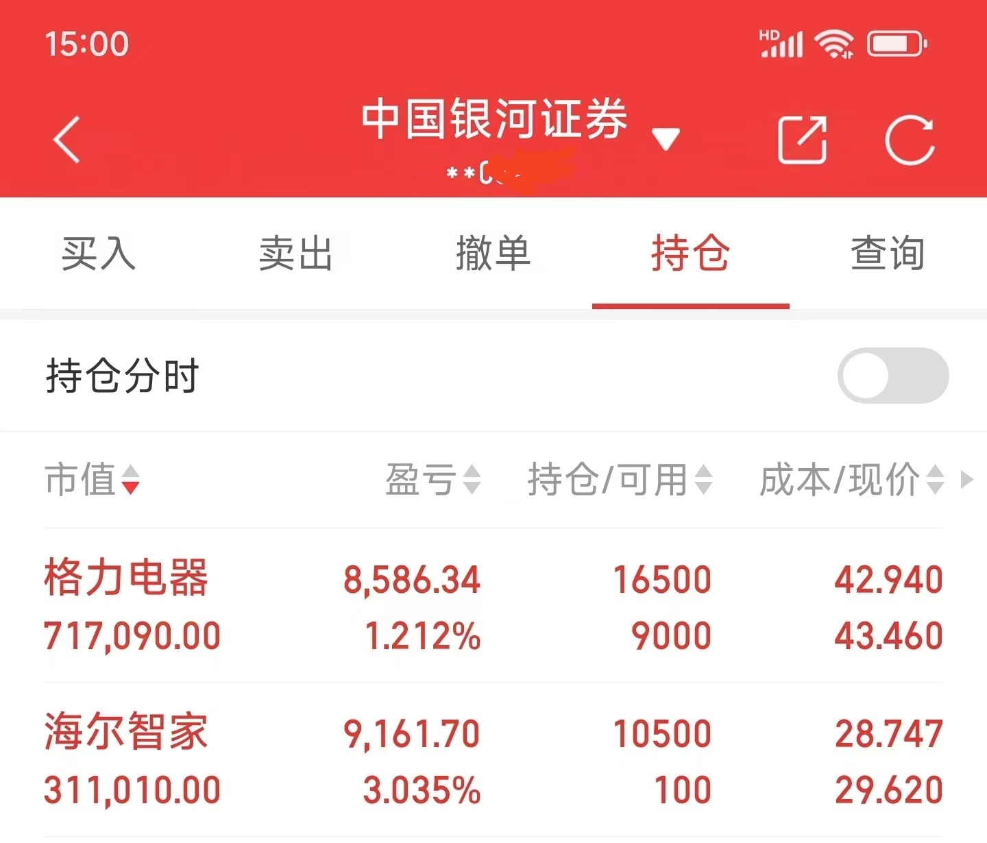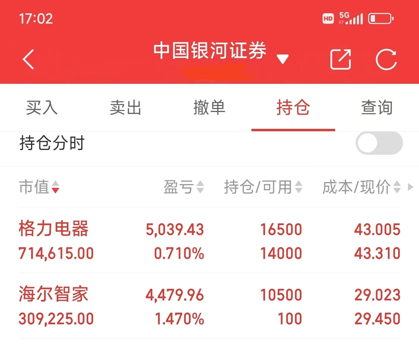 今年如果只轮动格力美的会好一点,现在掉到了海尔的坑里,很久找不到和格力美的轮动机会。海尔只能自己网格交易,希望能降点成本。