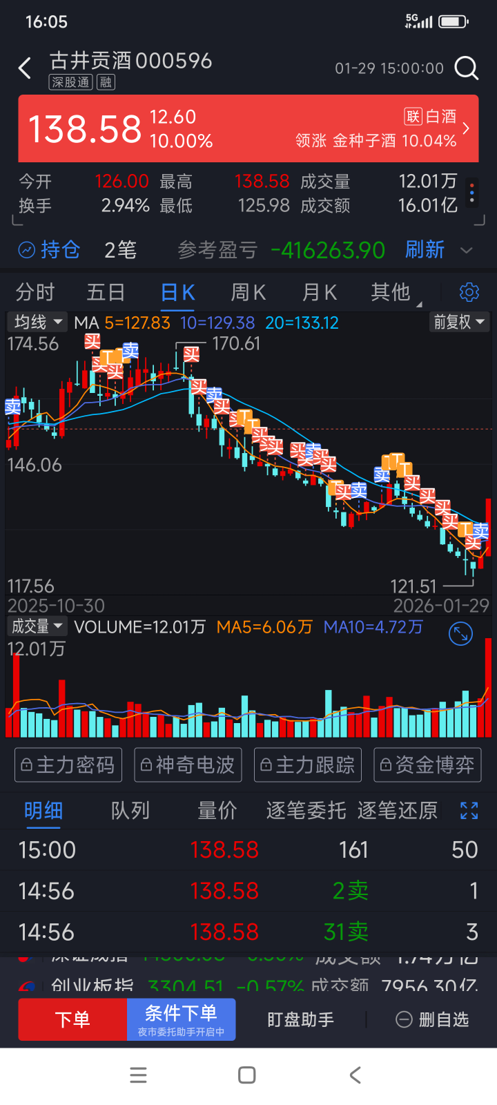 大部分仓位转到古井贡上,开始网格古井贡。新的一年还是在五只白酒中轮动,极少部分仓位轮动银行,为了配置沪市打新的份额。