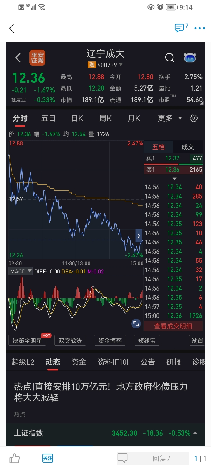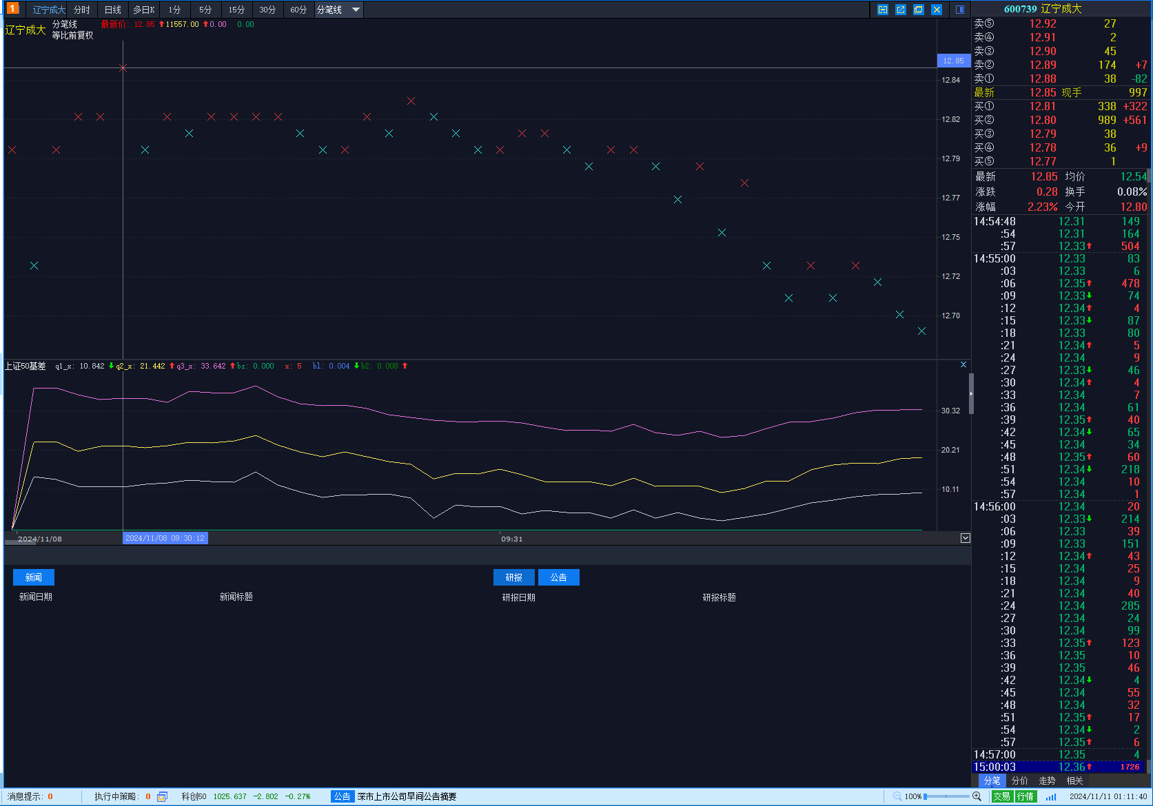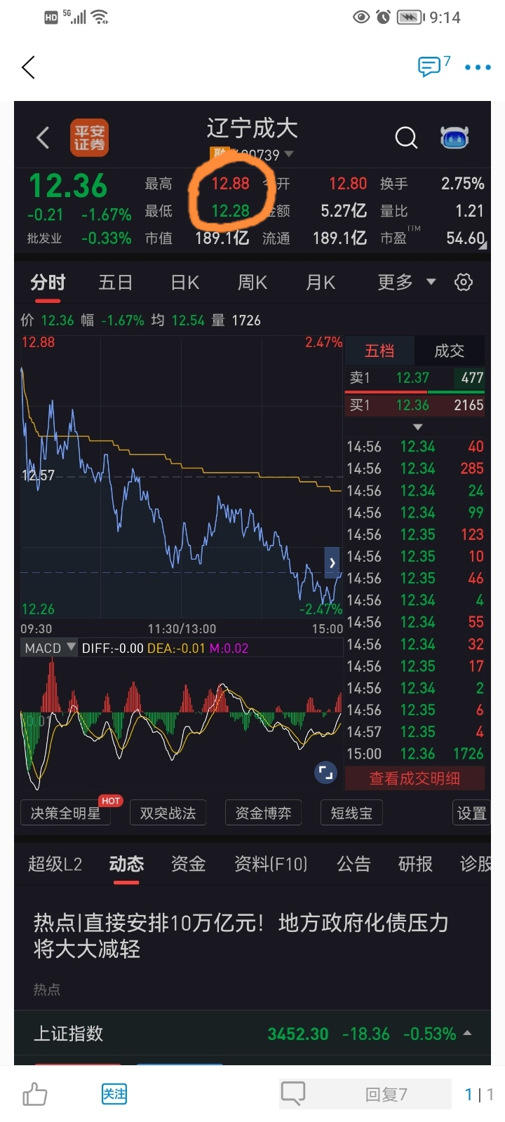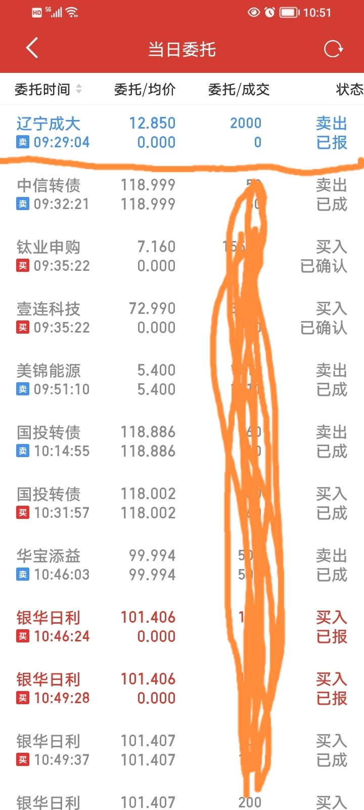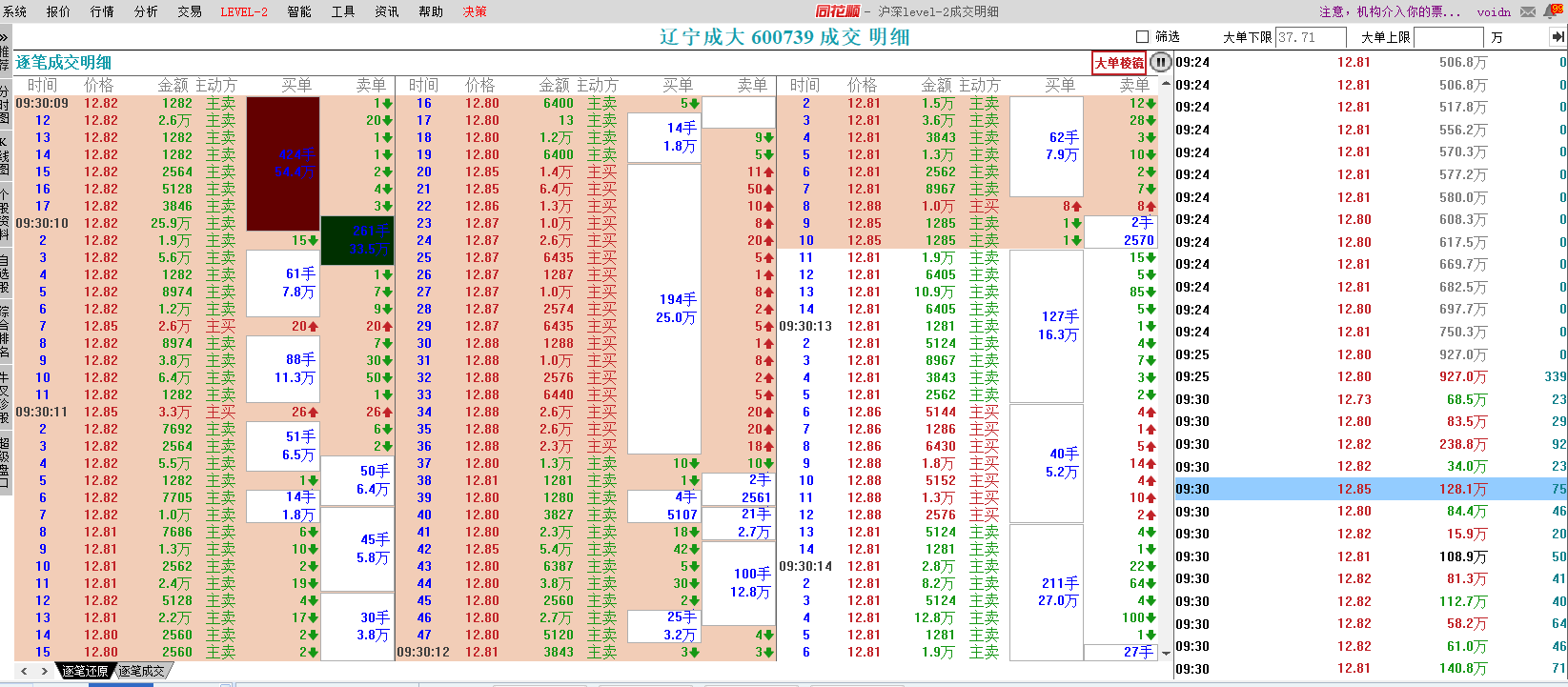 辽宁成大9:25开盘价12.8,盘中最高价12.88,我9点29分挂卖单12.85, 没有成交,这样真的正常吗?(如图)