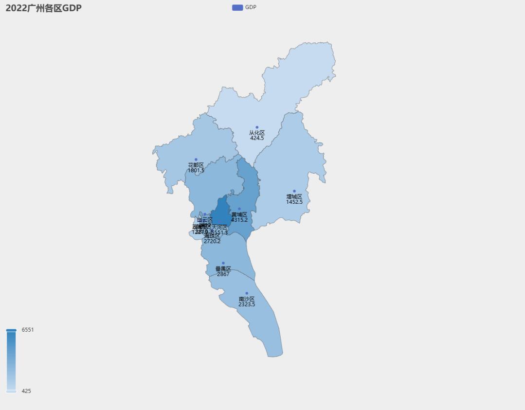 广州GDP:天河区最高6551亿,从化区最低424亿。