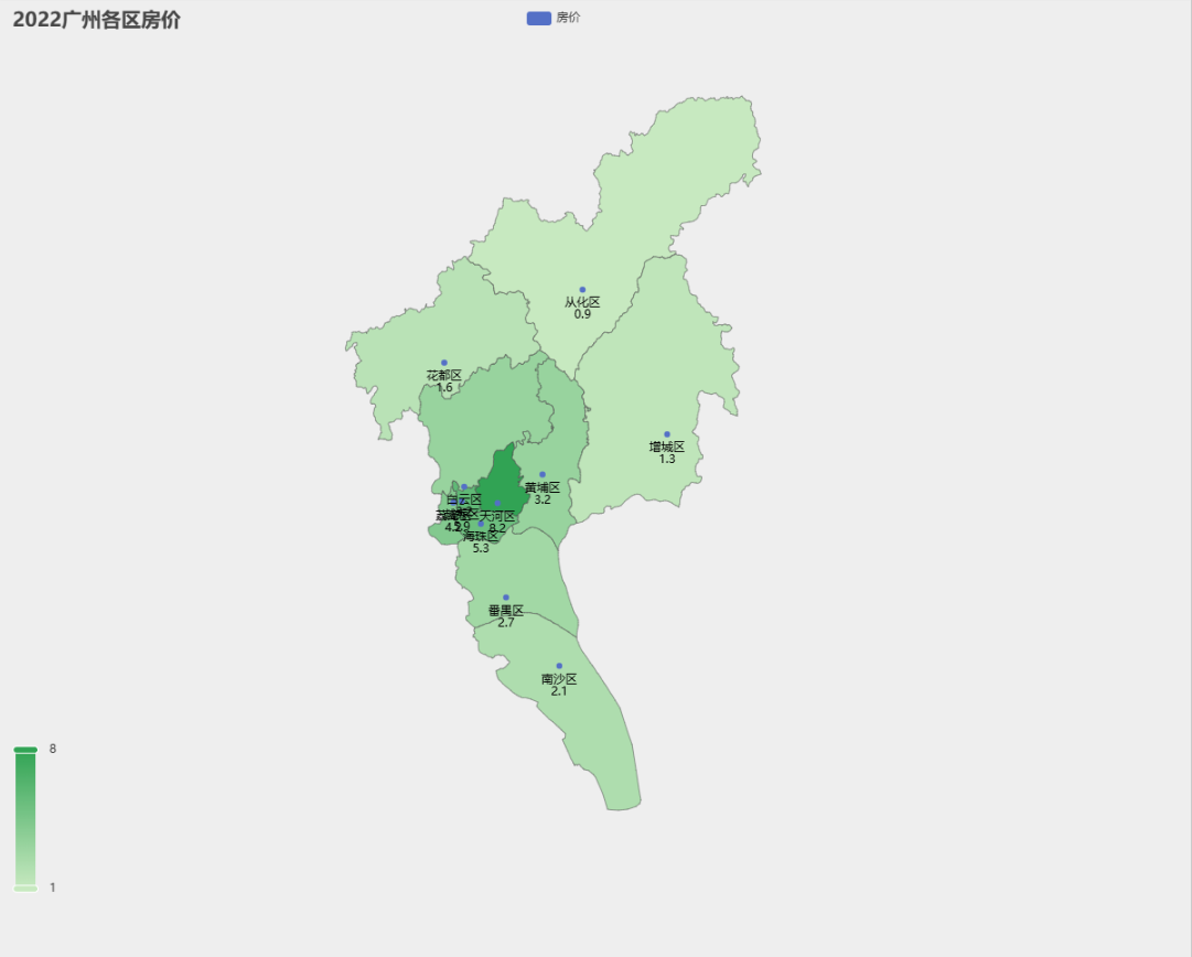 广州房价:天河区最高8.2万/平,从化区最低0.9万/平。