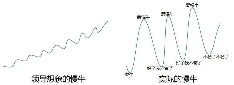 他们想要涨大蓝筹,那就是疯牛,参考07年,涨小盘股,也是疯牛,但高度没那么高,参考15年。慢牛是什么东西?哪一年有过吗?如果硬要说,嗯,参考19到21年?