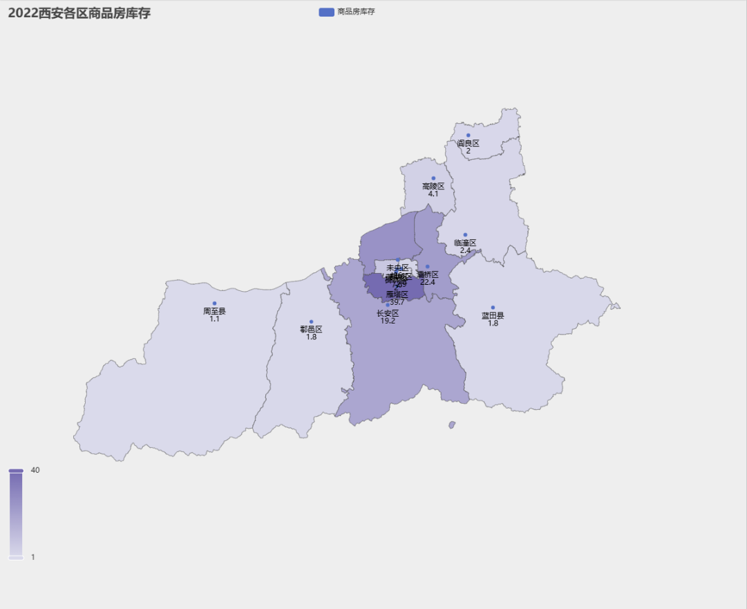 西安商品房库存:雁塔区最多3968万平米,周至县最少109万平米。