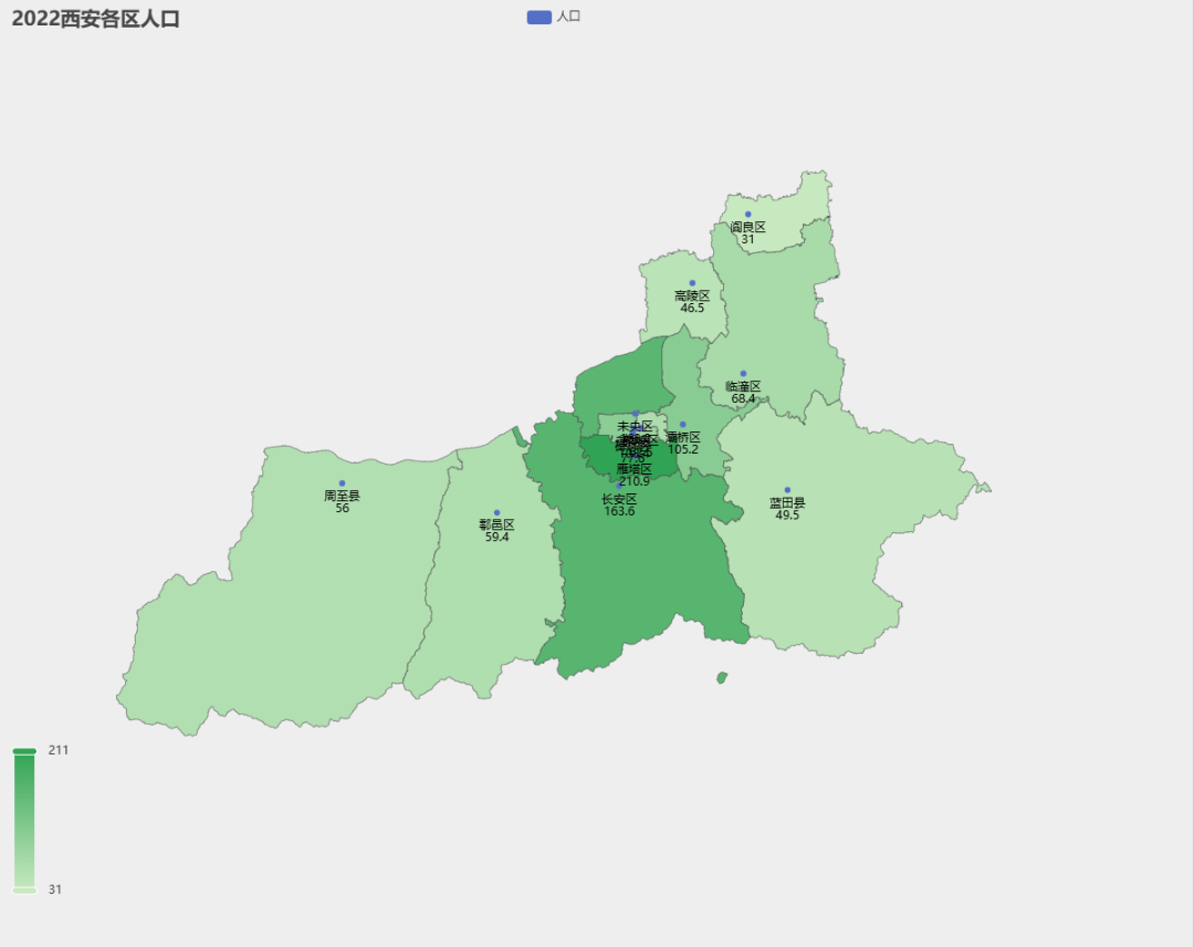 西安人口:雁塔区最多211万,阎良区最少31万。