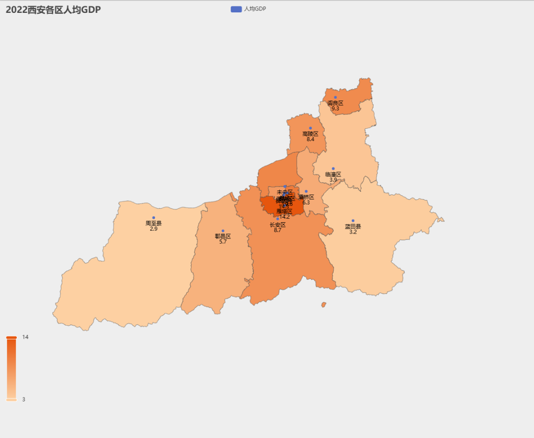 西安人均GDP:碑林区最高14.4万,周至县最低2.9万。