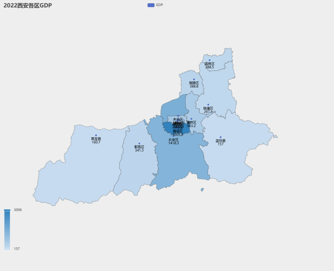 西安GDP:雁塔区最高3006亿,蓝田县最低157亿。