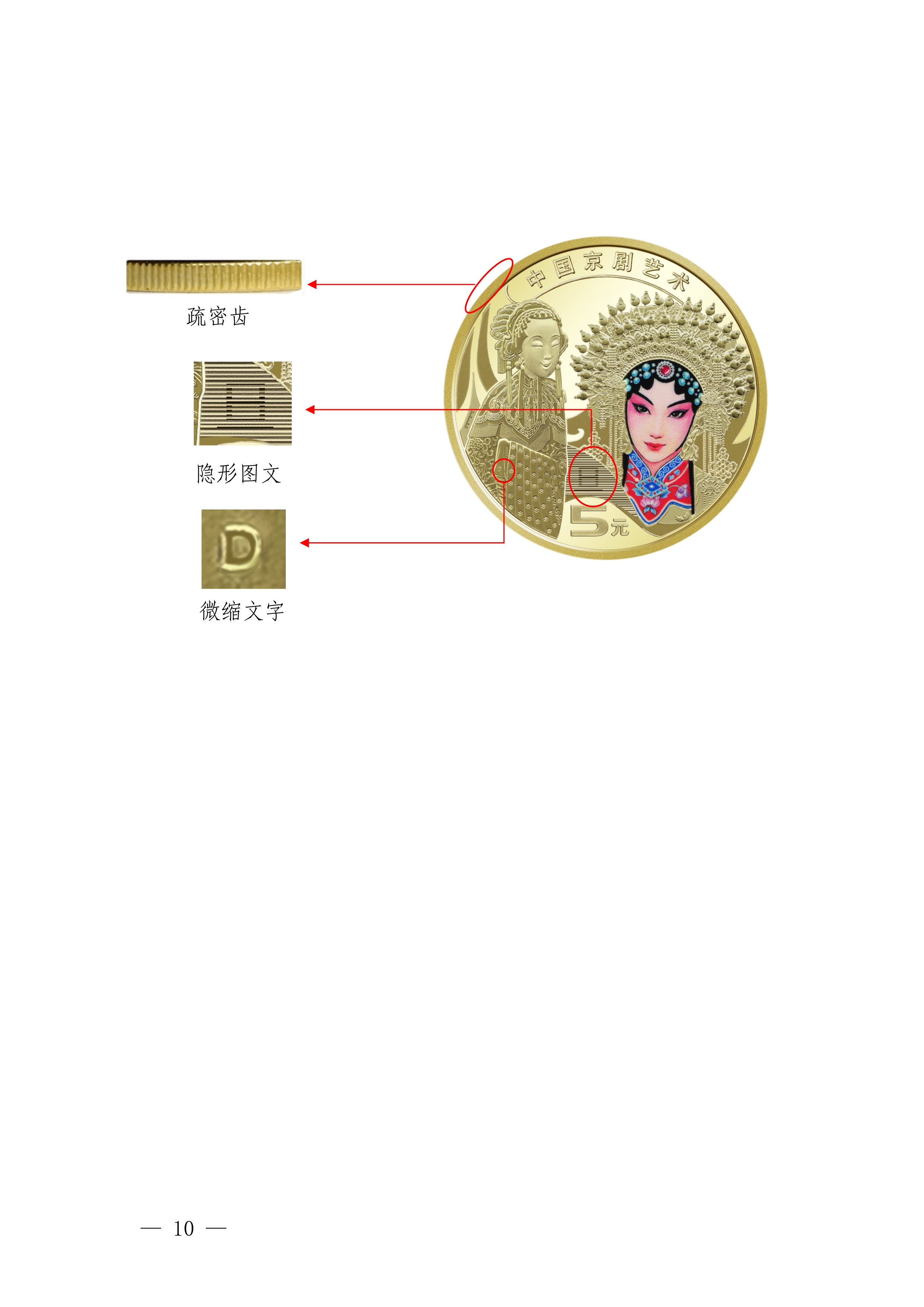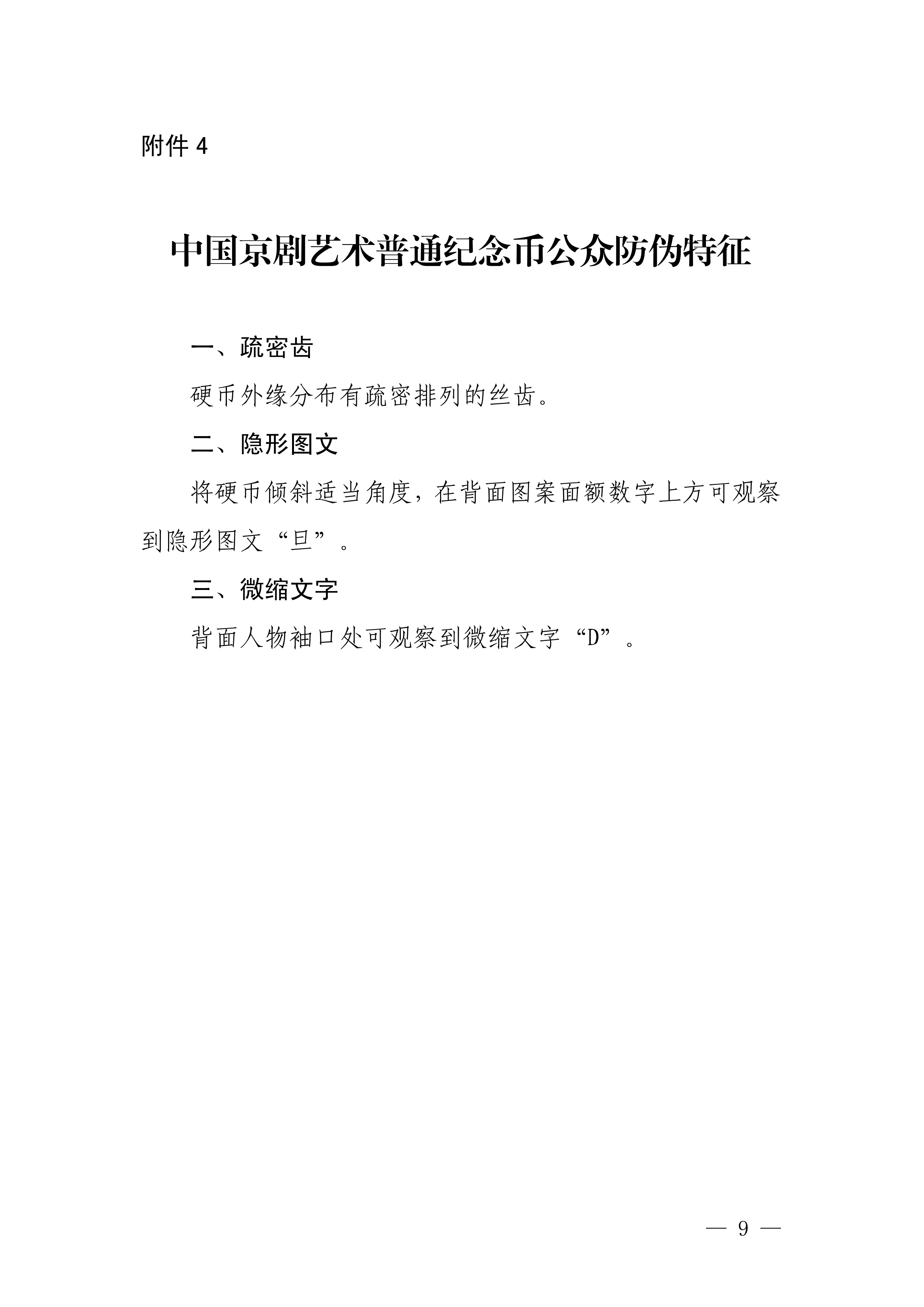 四、中国京剧艺术普通纪念币公众防伪特征见附件4。