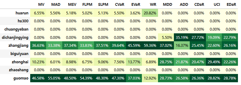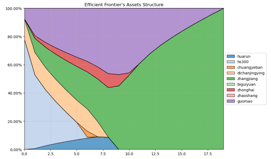 如果换成其他约束,系统给的配置比例也大同小异,基本是在中国国贸和张江高科之间做取舍了。