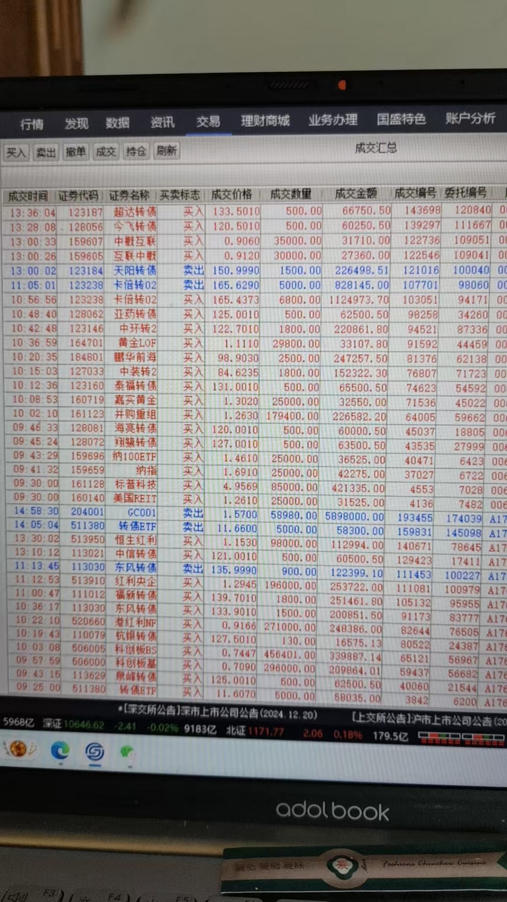 今天难得盈利0.62,仓位不足5成,特别是权益类仓位低于百分之十有点保守,固收加可转债仓位也只有.四成不到,商品类还在试仓,十一月总体是今年操作最失败的一月,踩雷跳坑频繁操作都快触碰到了一名号称低风险投资者的红线。好好总结经验教训,精心布局十二月,力争明年取得好成绩。