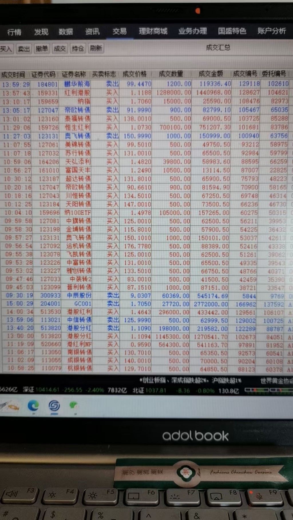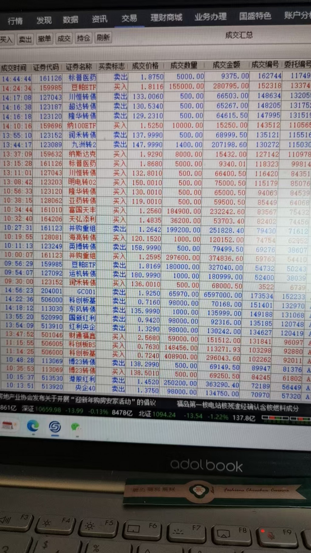 今天微盈0.08%,这几天日交易量大幅下降,持仓保持在四至五成仓,商品类黄金涨势喜人减少仓位,豆粕跌跌不休又加了仓,商品类仓位限制在百分之十以内,权益类控制在百分之二十左右,剩下资金放在固收和可转债上短线操作,感觉可转债目前风险正在加大,只能快进快出。