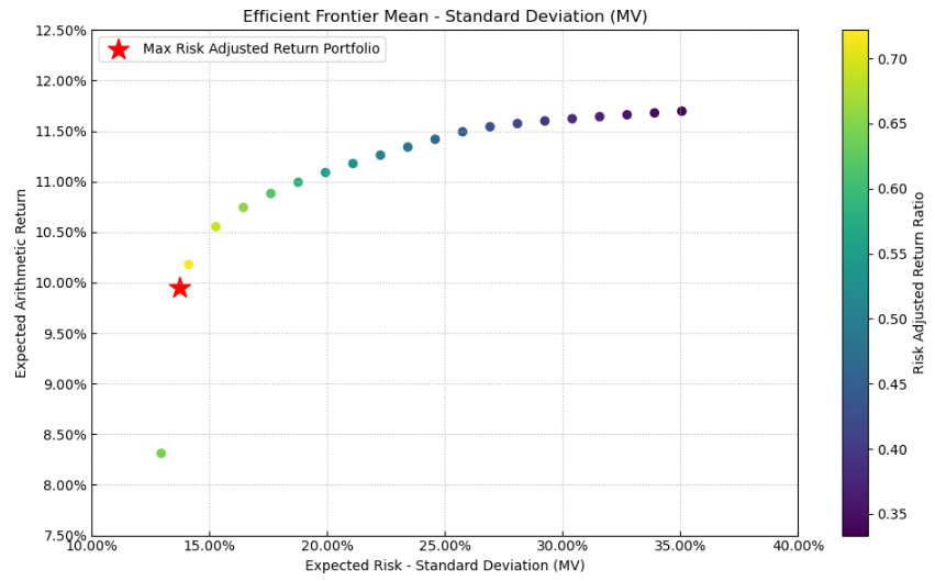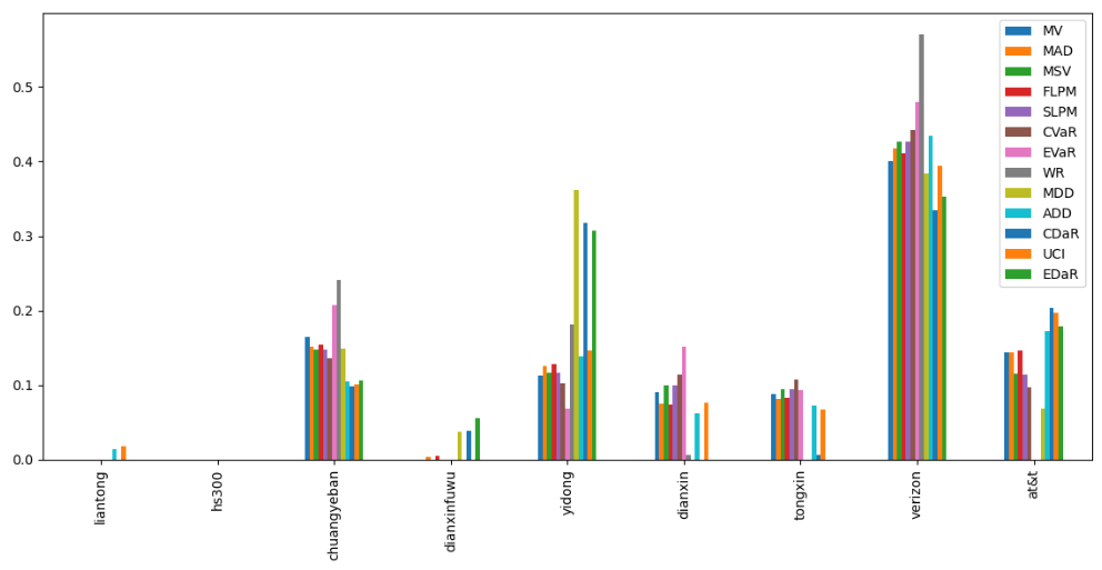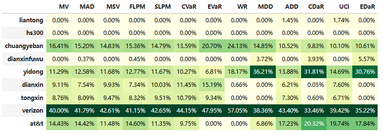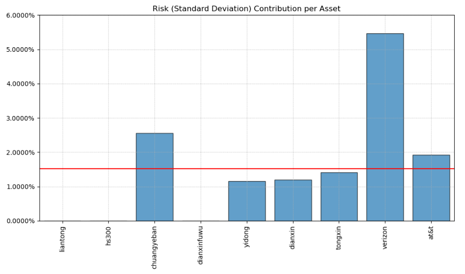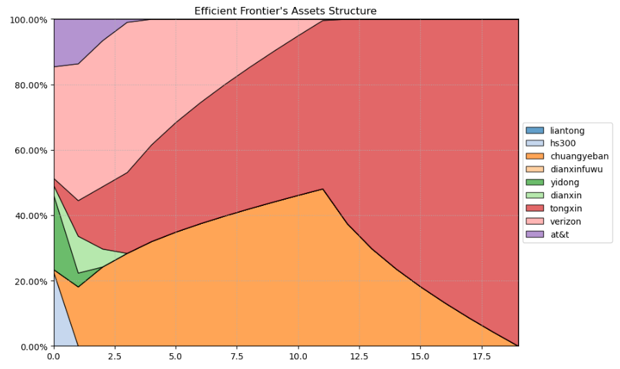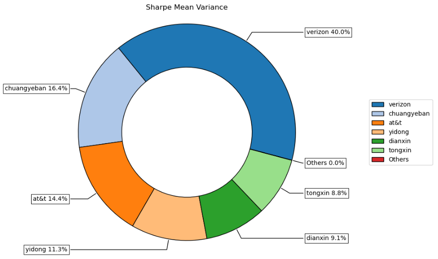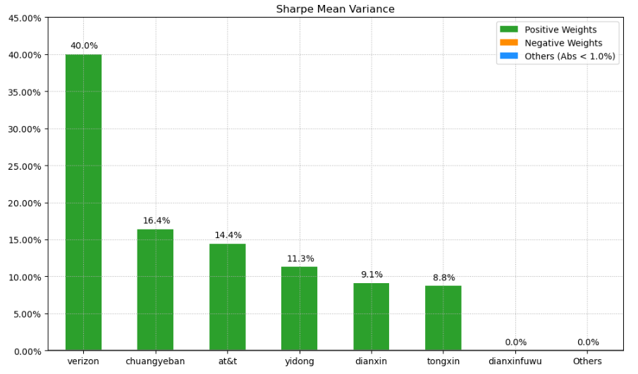 按最高夏普比率配置的话,系统给的权重为0,最大权重的美股Verizon占比40%。