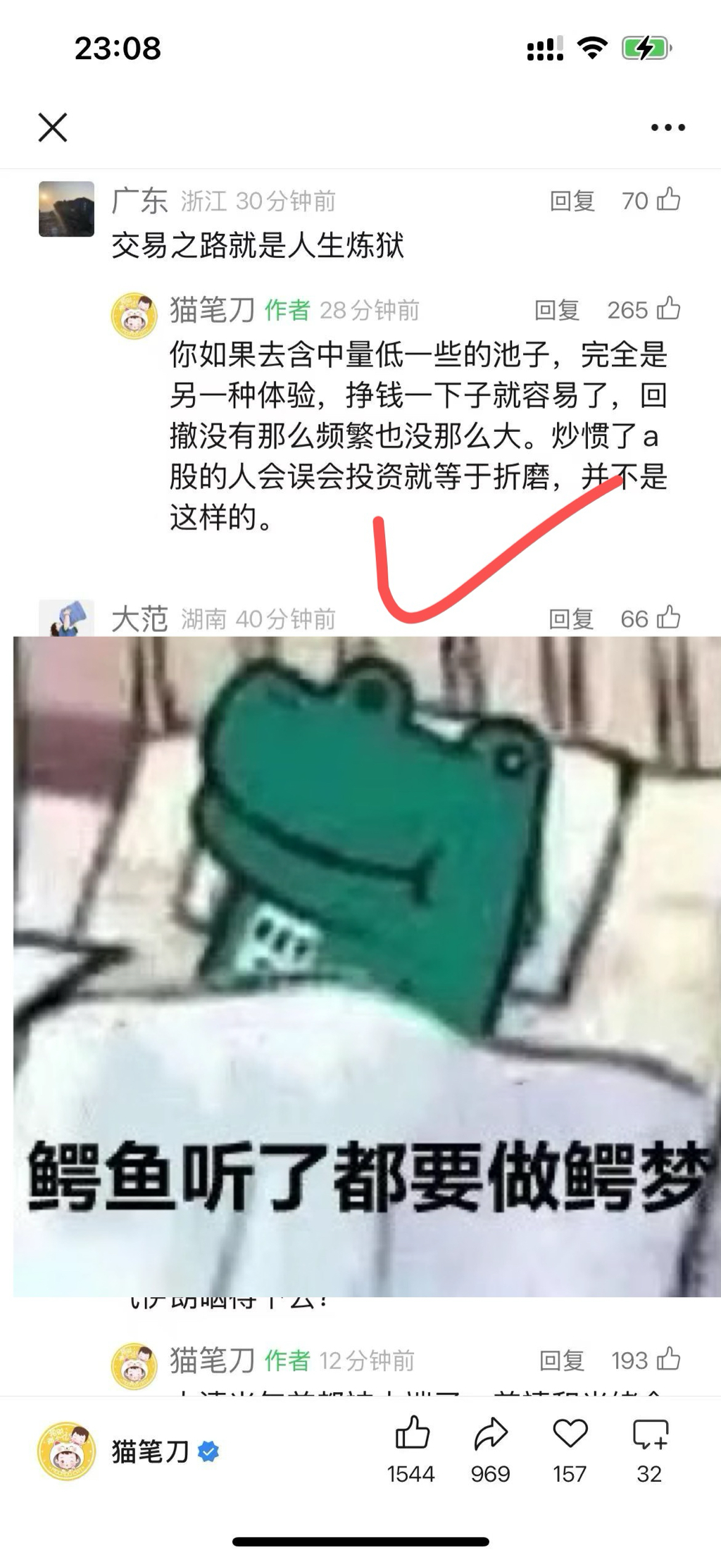 兄弟想多了,做投资好的法则都是长期而稳定回撤小的正收益,眼红破防那是你发这帖子前的心态,不是我的心态。我就闲的发慌,到处逛逛,每天中午下午收盘看一眼就行了。网上发帖晒收益我以前做过,现在懒得做。