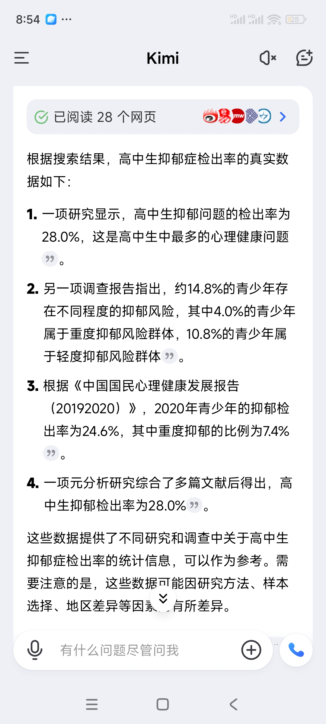2023年10月10日,在北京发布了《2023年度中国精神心理健康》蓝皮书。 报告显示,高中生抑郁检出率超40%,初中生抑郁检出率超30%,而小学生的抑郁检出率超10%。