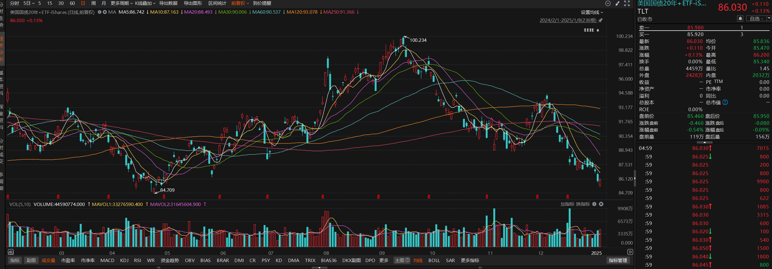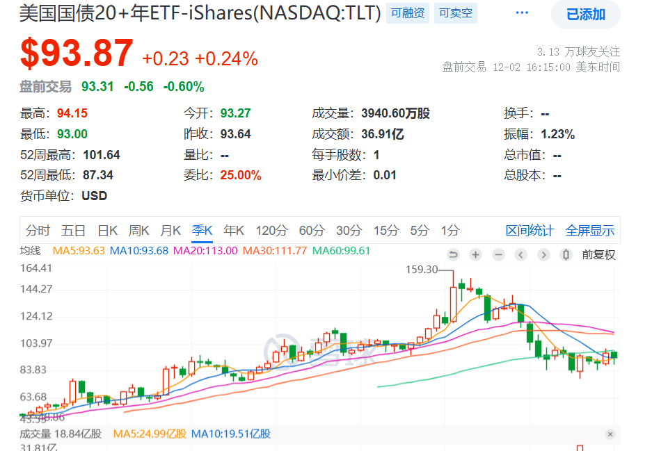 TLT的久期基本上都在20以上,降息通道打开以来下调了75个BP,所以变化幅度0.75X20=15%,很正常啊,有啥问题