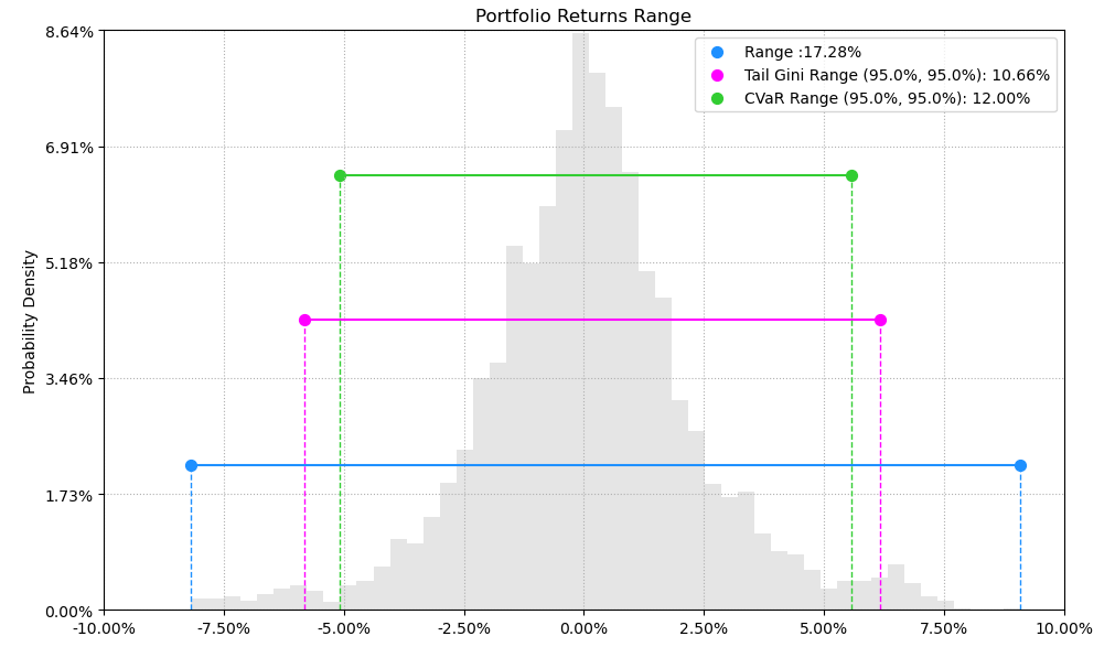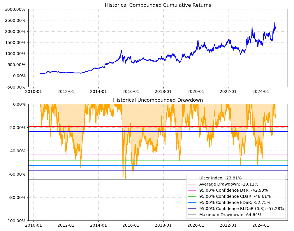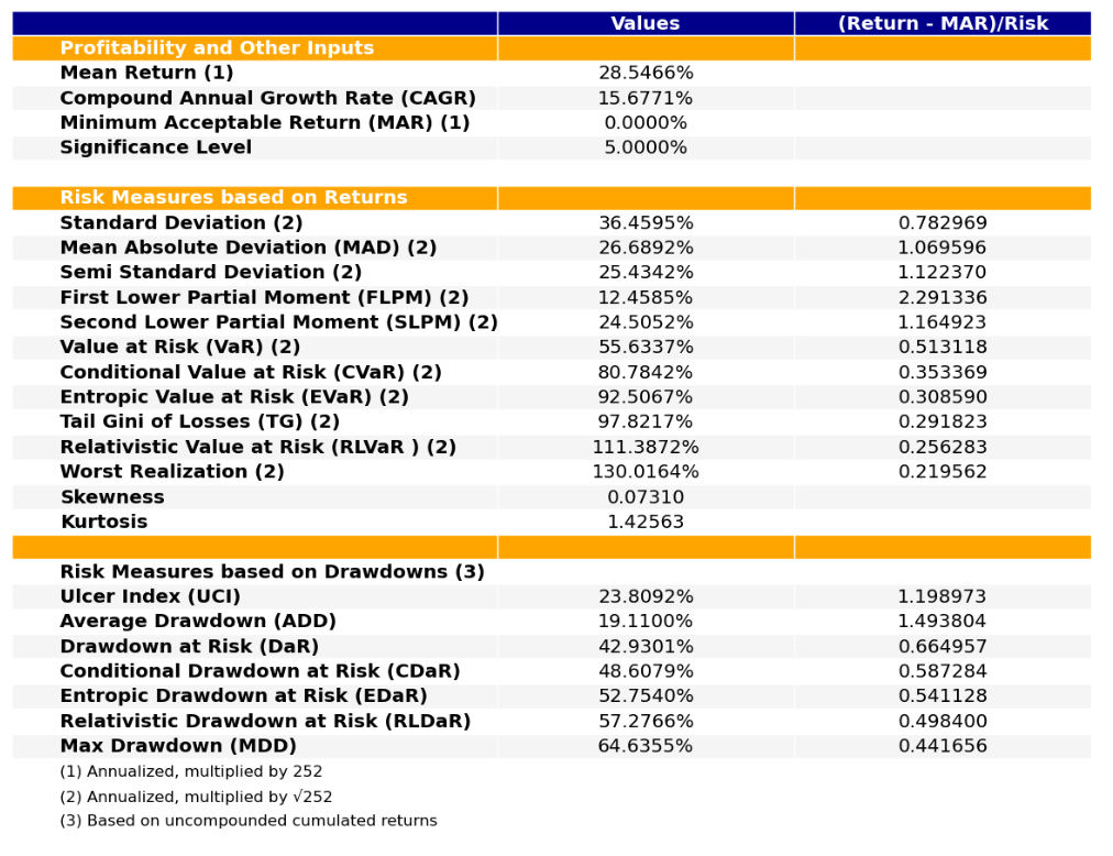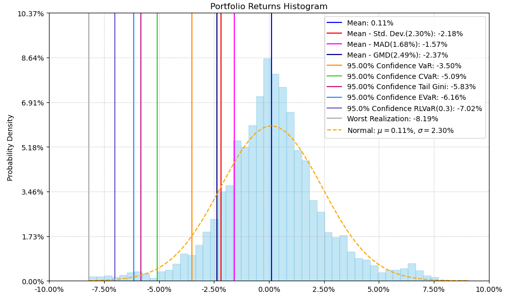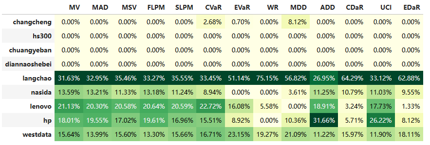 最后看下整个投资组合的情况,日度均值回报在0.11%,比上次测的多品零售行业高了40%,相应地12%的CVaR波动也会大不少。