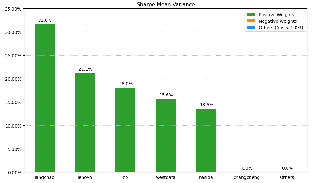 按最高夏普比率配置的话,系统给的权重为0,最大权重的浪潮信息占比31.6%。
