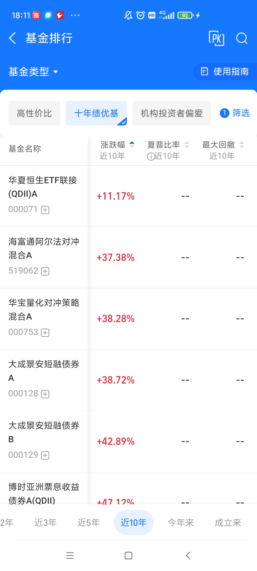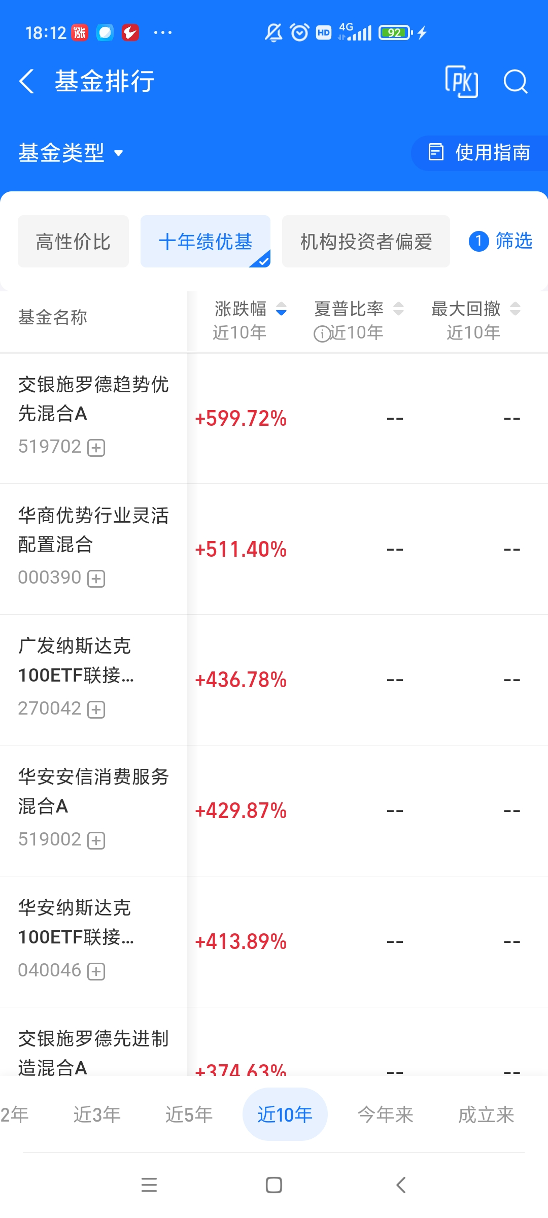 更冷的知识:随便一只基金就有这么牛。这个,筛选条件是“十年绩优“