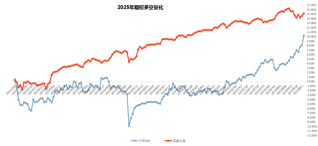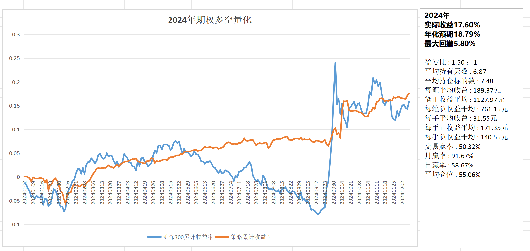 期权量化多空对冲策略,本日收益-0.24%,本周收益0.41%,2025年累计收益17.66%