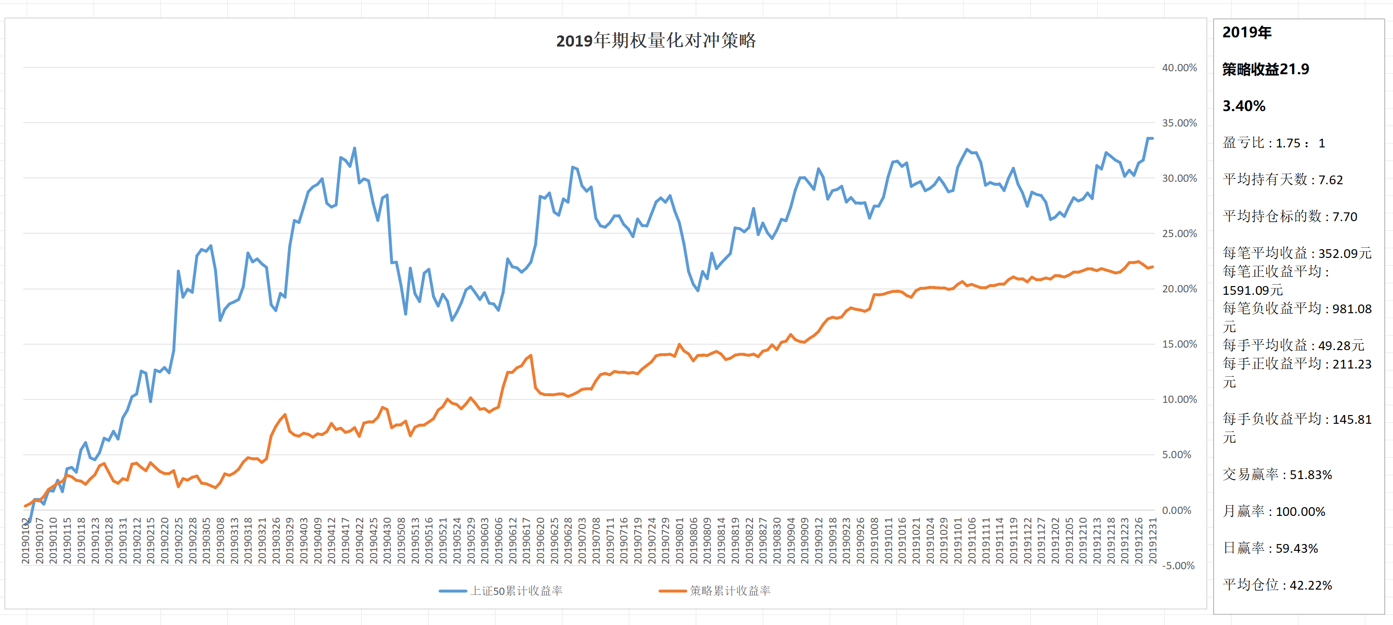 -2019年 标的:50ETF期权 收益率 22% 最大回撤 3.4%