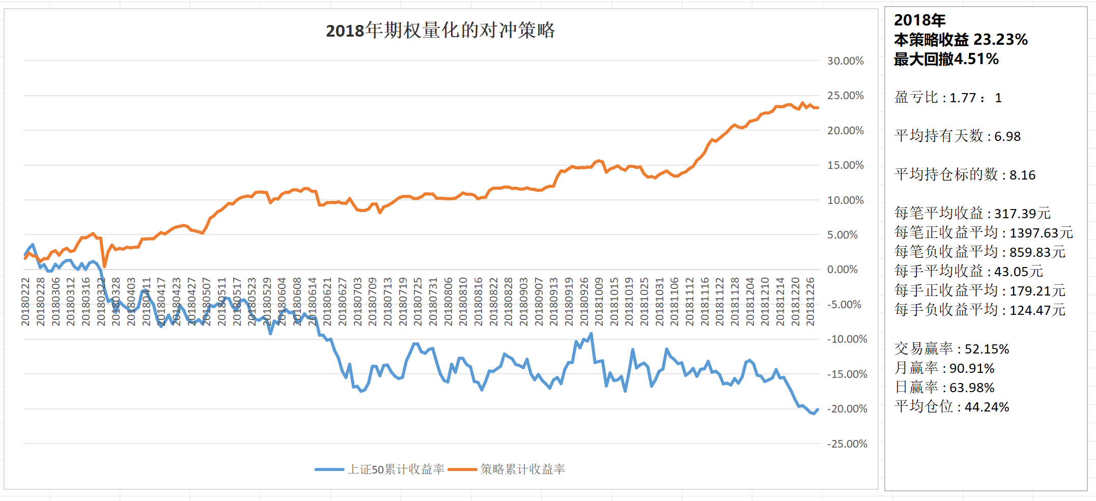 -2018年 标的:50ETF期权 收益率 23% 最大回撤 4.5%