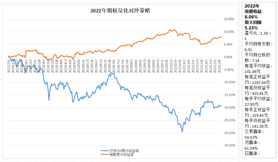 -2022年 标的:300ETF期权 收益率 8.06% 最大回撤 5.23%