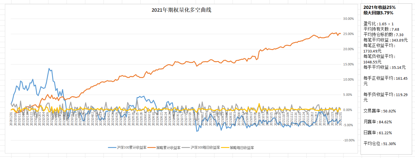 -2021年 标的:300ETF期权 收益率 25% 最大回撤 3.79%