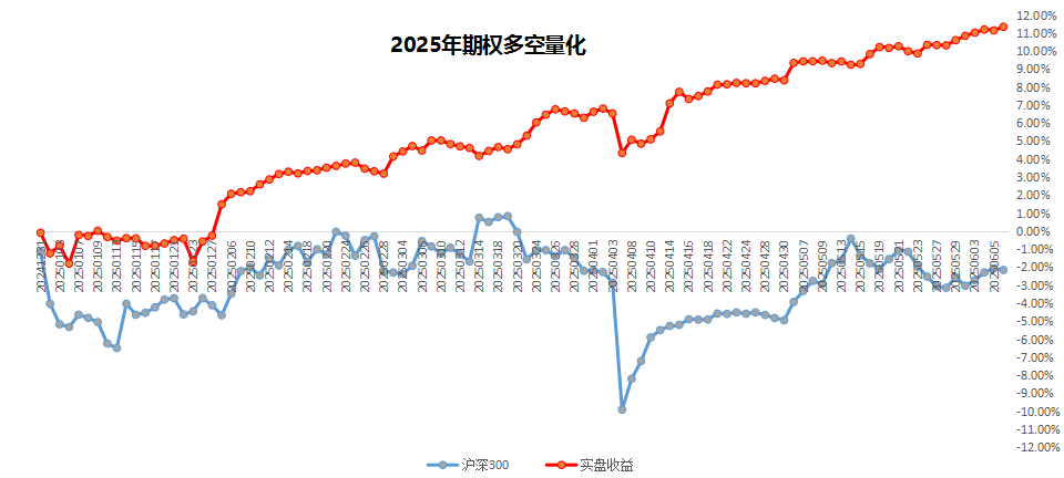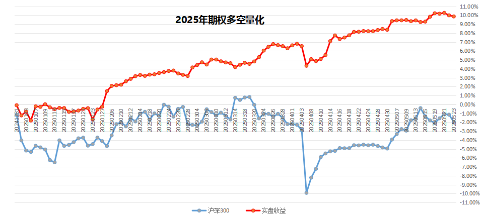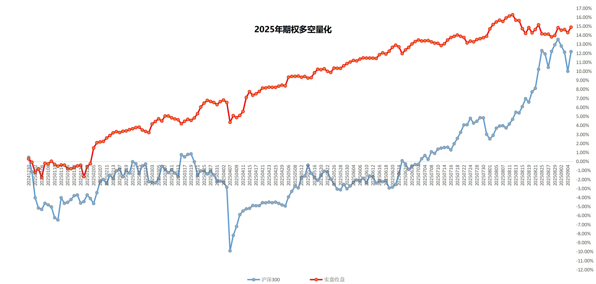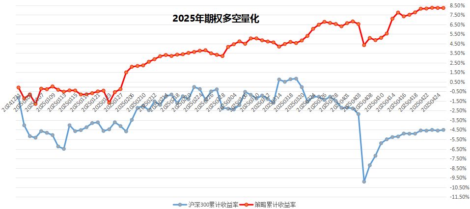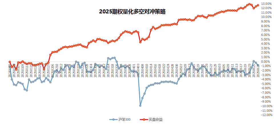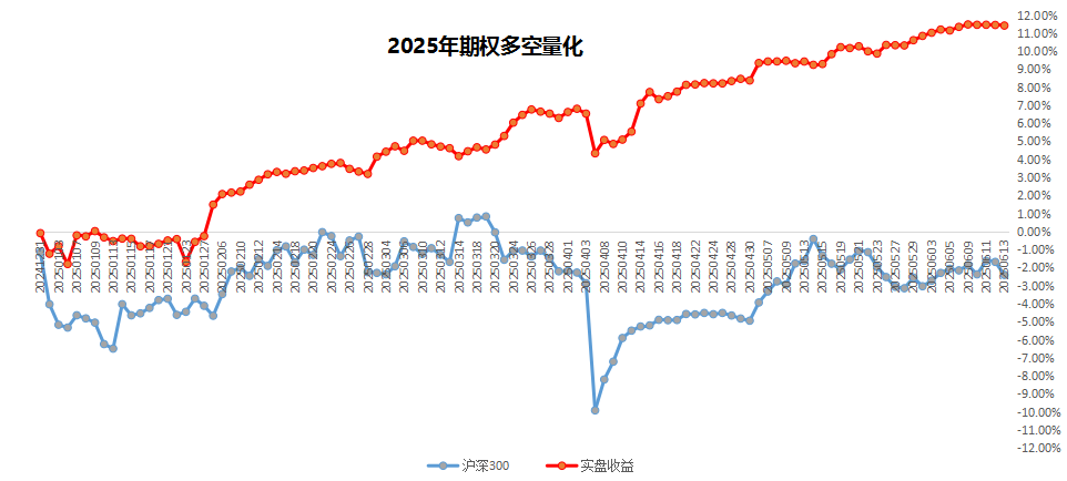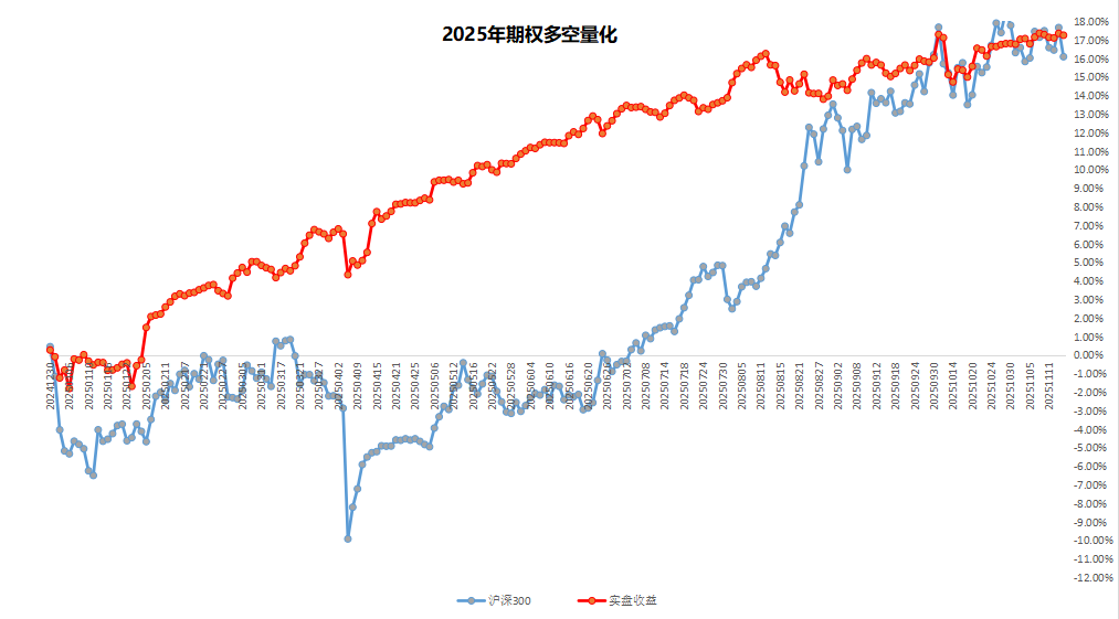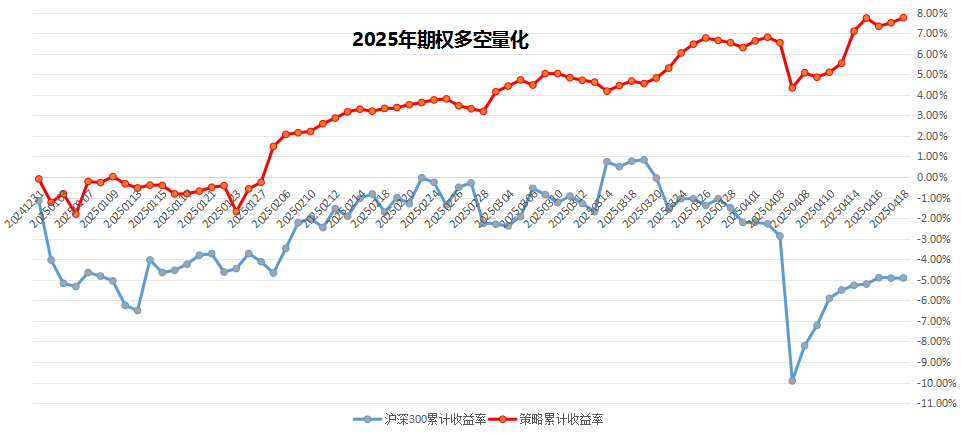 期权量化多空对冲策略,当日收益-0.042%,本周收益0.13%,2025累计收益16.77%