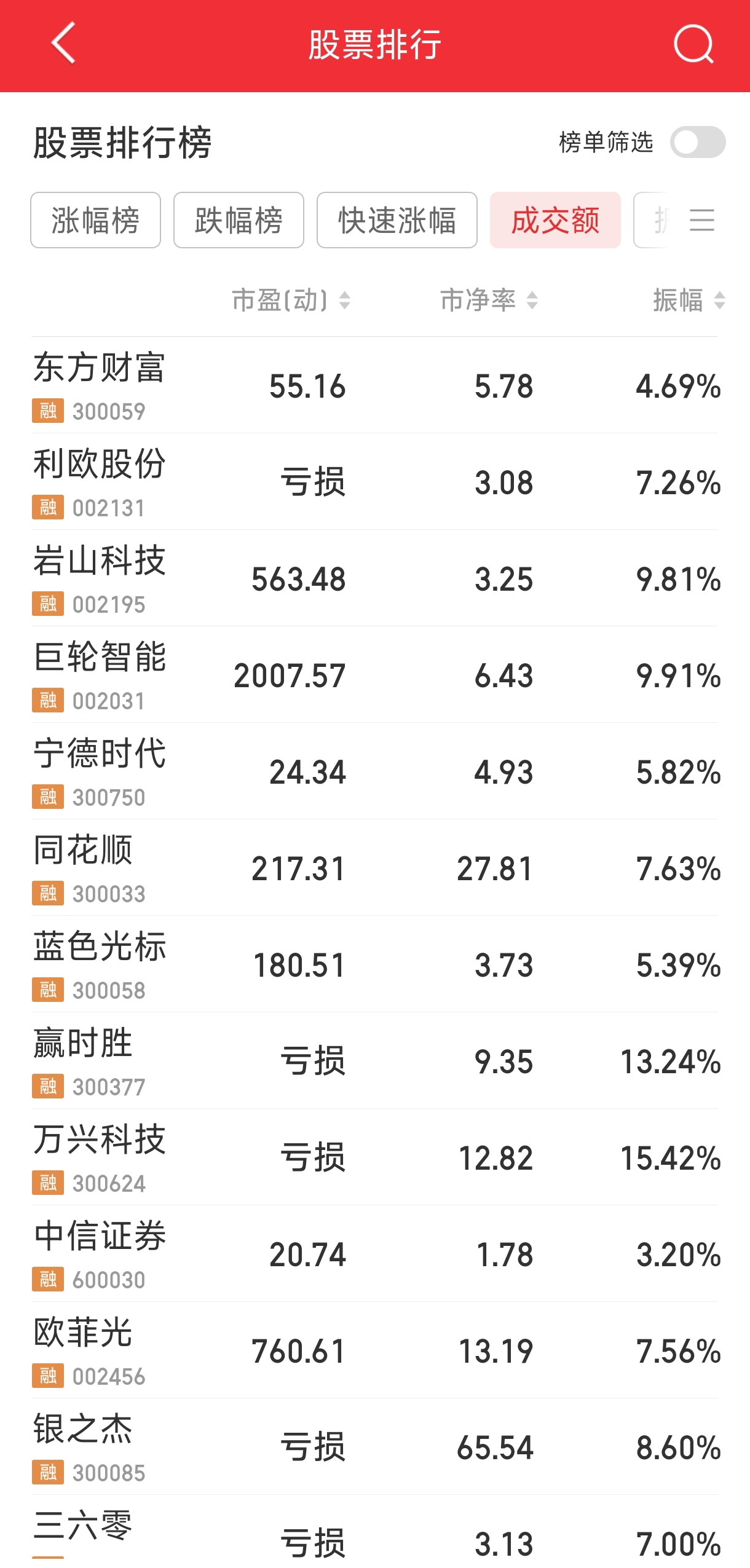 指数涨幅