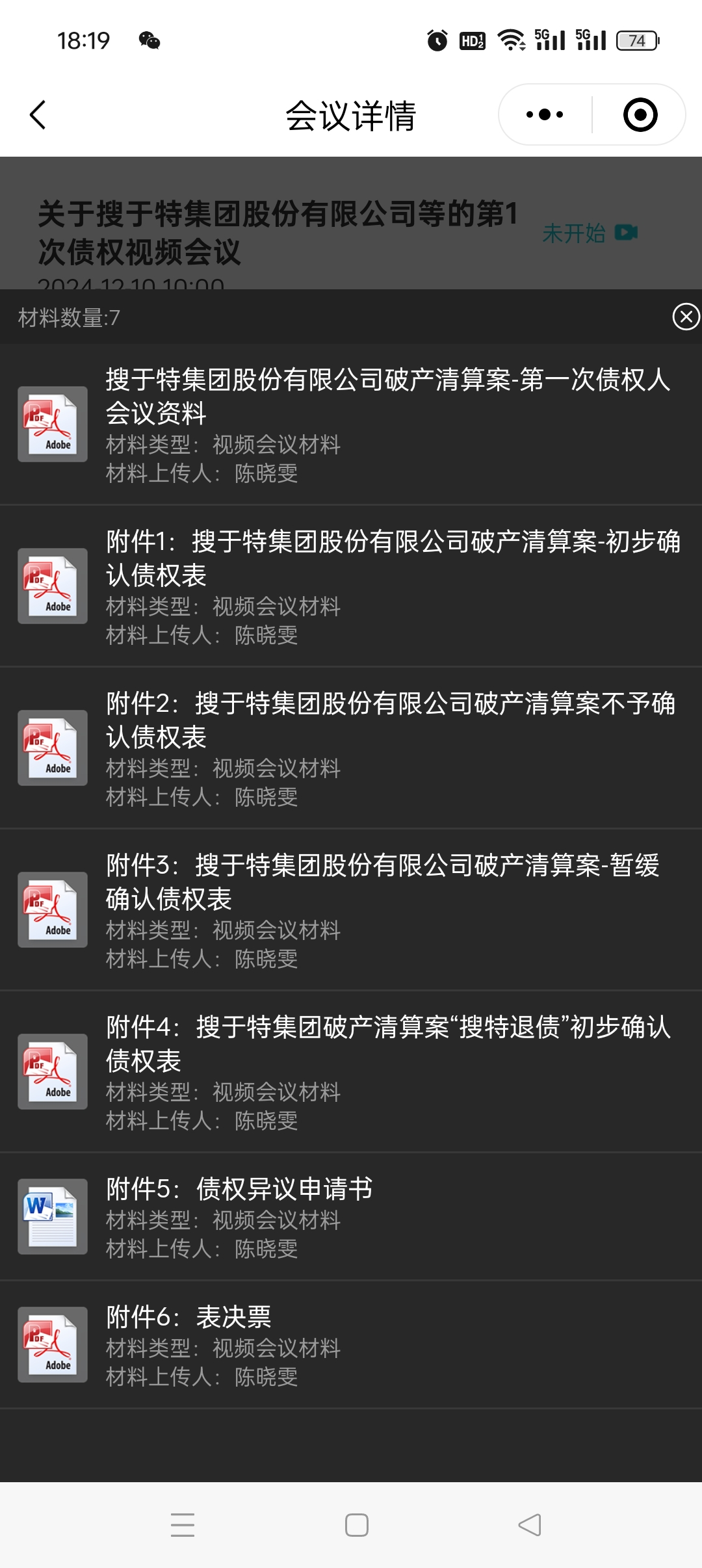 债权人可在2024年12月10日8:00后在端口下载、查阅债权人会议资料。