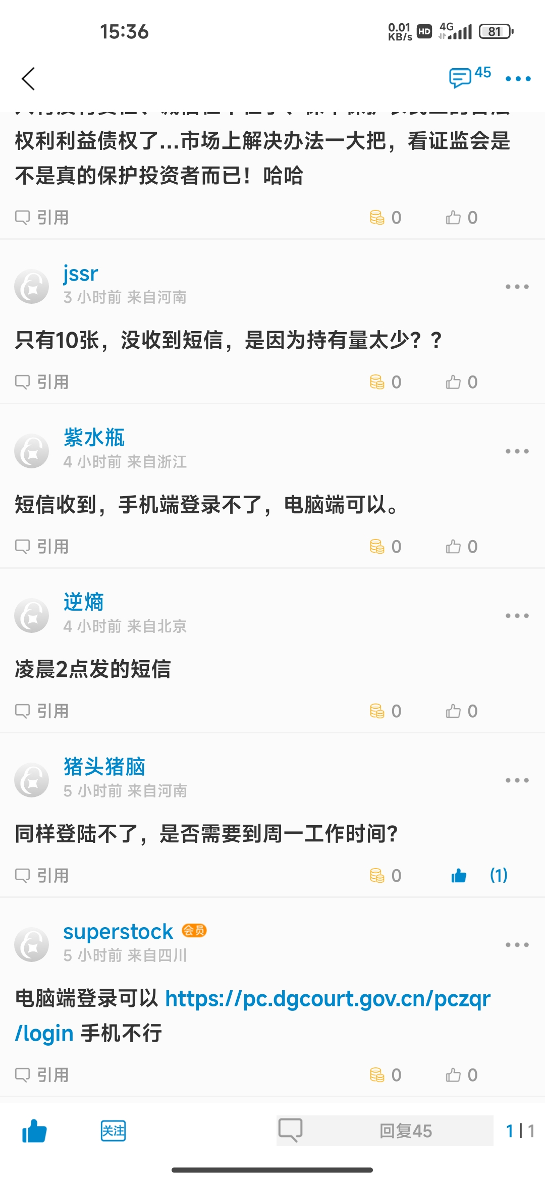 作为一个年过半百的准老年人,试了几次还是弄不了,话说这种会议如果只能做选择题的话有什么意义?有没有债友了解此债的互助表达诉求的渠道?感觉就这样被牵着鼻子走的话,基本上血本无归了手机微信按步骤注册个账号!手机可以点这个贴里SUP他发的链接,点进去登录刚注册的账号!可以看见自己搜特的债权等信息