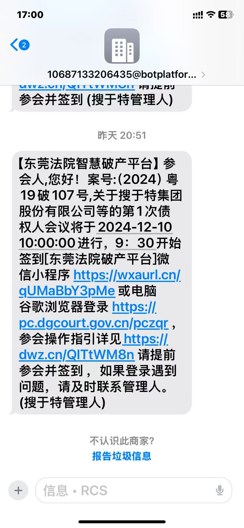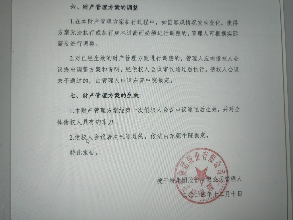 从上面的几点设置可以看出,管理人就是希望我们转债的持有人不参加、不投票、不投反对票,这样达成他们自己的目标:搜特的残值由他们处置,转债的持有人等同于普通的债权,而且是别的债权人分完了之后剩余的。其他债权人分完之后还能有吗?肯定没有了。别想着小额了,别想着还能有10块20块了,如果不积极争取,几毛钱都没有。