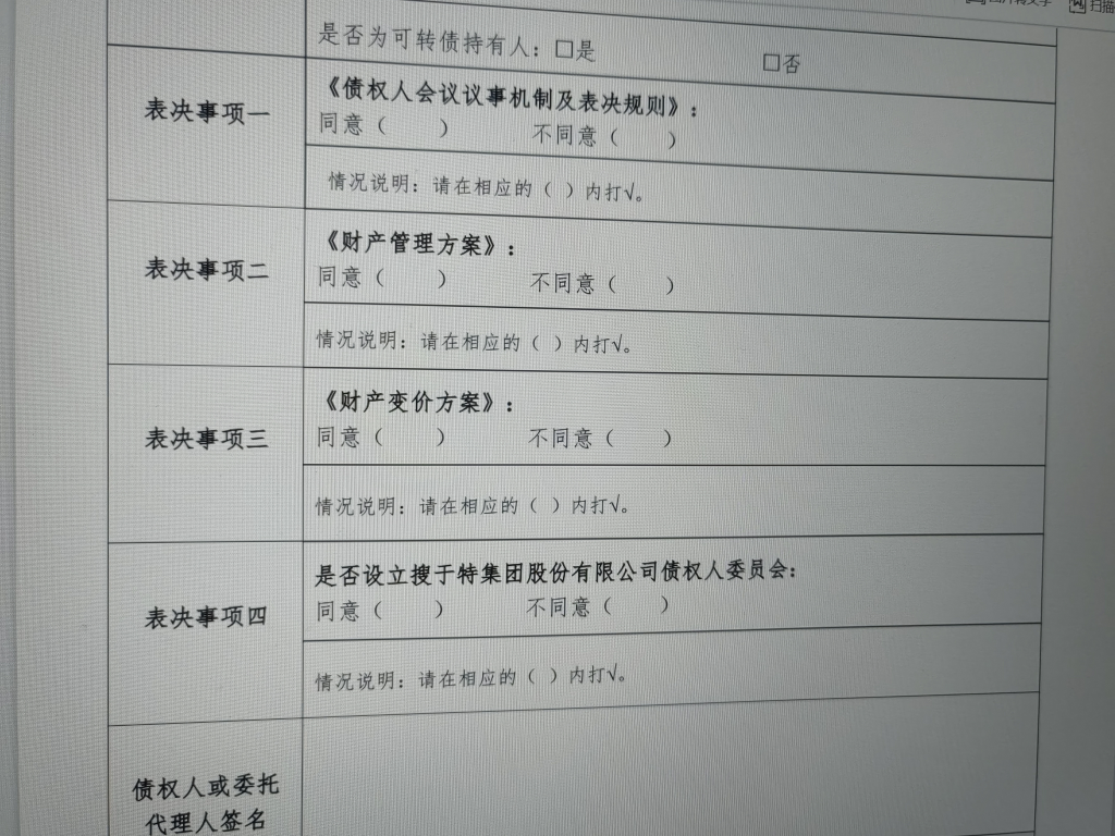 等周二上午,从微信小程序链接点进去投票就是了。意义不大,因为是把转债持有人和其它债权人放一起了,所以我们转债加一起也才7.8亿债权,同不同意人家都能通过。农行优先债权18亿,普通债权12亿,是这个什么代表